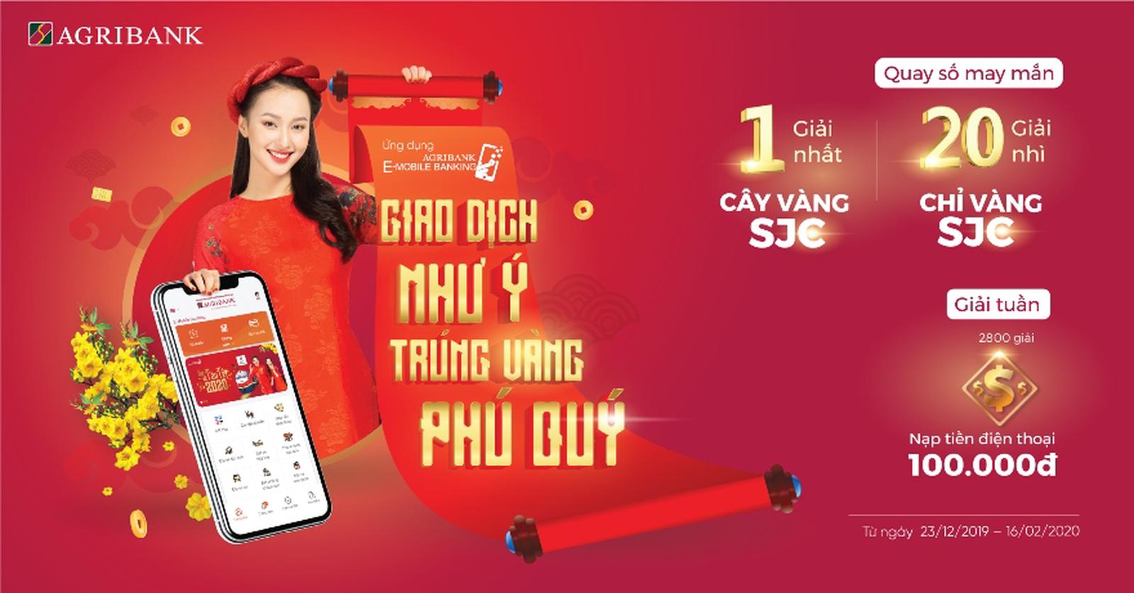 Trong suốt 08 tuần diễn ra chương trình, đã có 2.800 khách hàng đầu tiên đăng kí mở mới dịch vụ Agribank E-Mobile Banking được tặng thẻ điện thoại trị giá 100.000đ. Cùng với đó, với mỗi giao dịch thanh toán QR Pay/Nạp tiền điện thoại/Thanh toán hóa đơn/Đặt vé máy bay/Đặt phòng khách sạn/Mua vé xem phim/Mua sắm VnShop/Đặt vé xe/Đặt vé tàu và có giá trị từ 100.000 VNĐ, khách hàng đều nhận được một mã số dự thưởng tham gia quay số may mắn vào cuối chương trình, với giải nhất trị giá 01 cây vàng SJC và 20 giải nhì mỗi giải trị giá 1 chỉ vàng SJC.