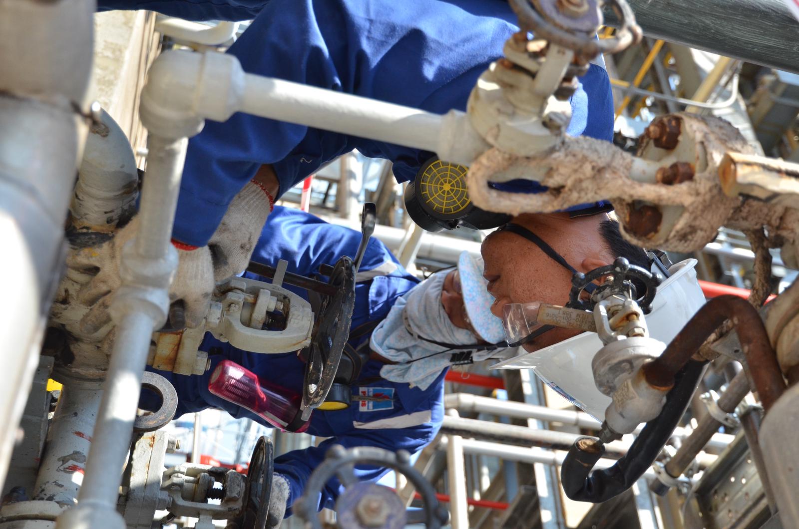 Công nhân kỹ sư BSR và nhà thầu nỗ lực hết mình cho bảo dưỡng tổng thể. Ảnh: NC