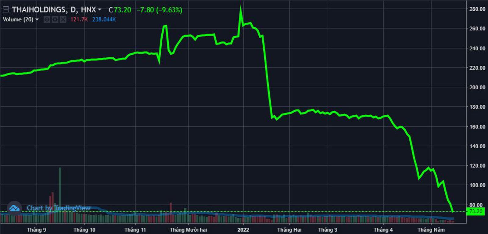 Theo ghi nhận trong ngày 17/5, giá cổ THD chạm mức 73.200 đồng, giảm tới 74% so với thời điểm đầu năm, tương đương với việc bốc hơi 70.000 vốn hoá thị trường.