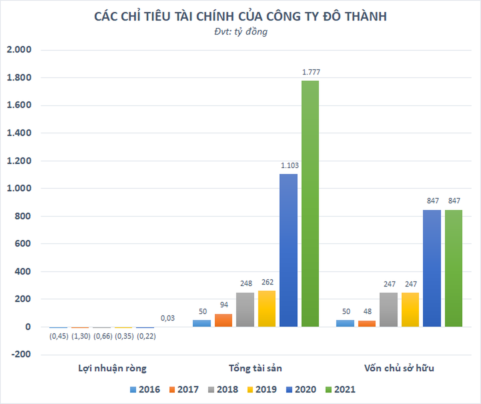 Từ khi thành lập đến hết năm 2021, Đô Thành gần như “nằm im” khi không phát sinh một đồng doanh thu nào. Dù vậy, công ty vẫn phải gánh các khoản chi phí dẫn đến thua lỗ triền miên trong suốt giai đoạn 5 năm (2016-2021) tuy nhiên số tiền không quá lớn chỉ từ khoảng 200 triệu đến 1,3 tỷ đồng.