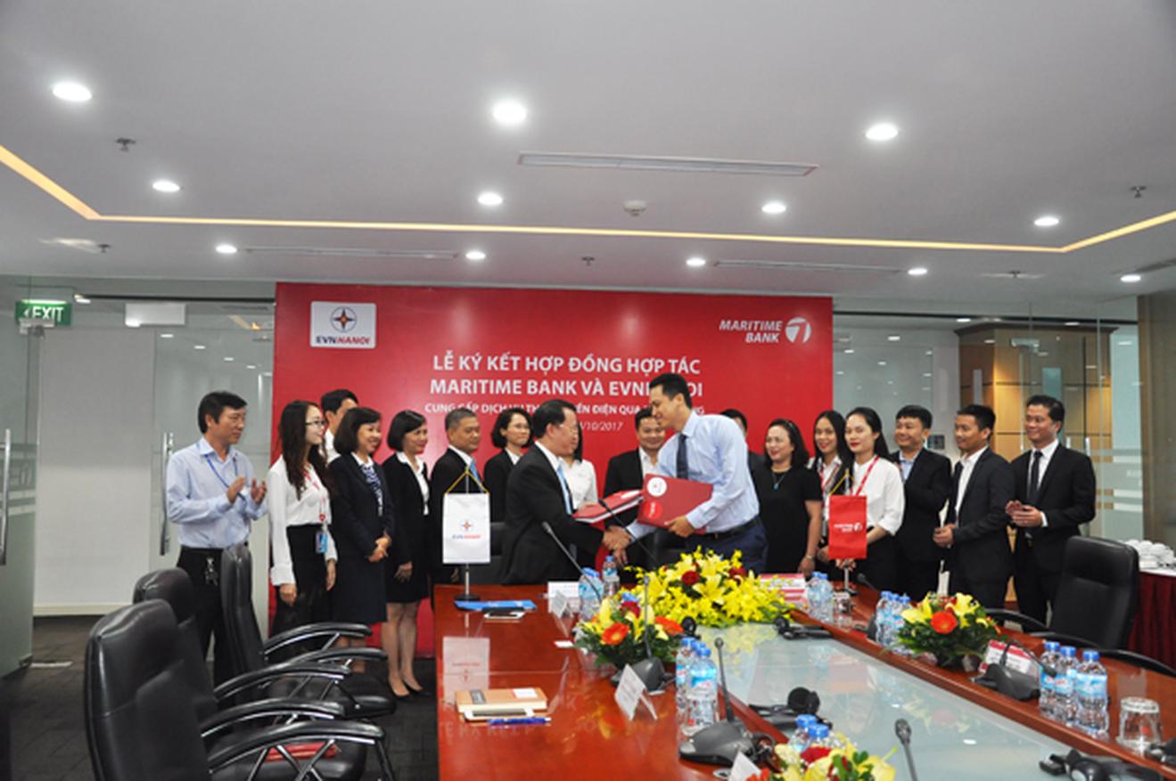 (Thanh tra) - Ngày 24/10/2017 tại Hà Nội, Ngân hàng TMCP Hàng Hải Việt Nam (Maritime Bank) và Tổng Công ty Điện lực Hà Nội (EVN Hà Nội) đã ký thỏa thuận hợp tác dịch vụ thu hộ tiền điện.