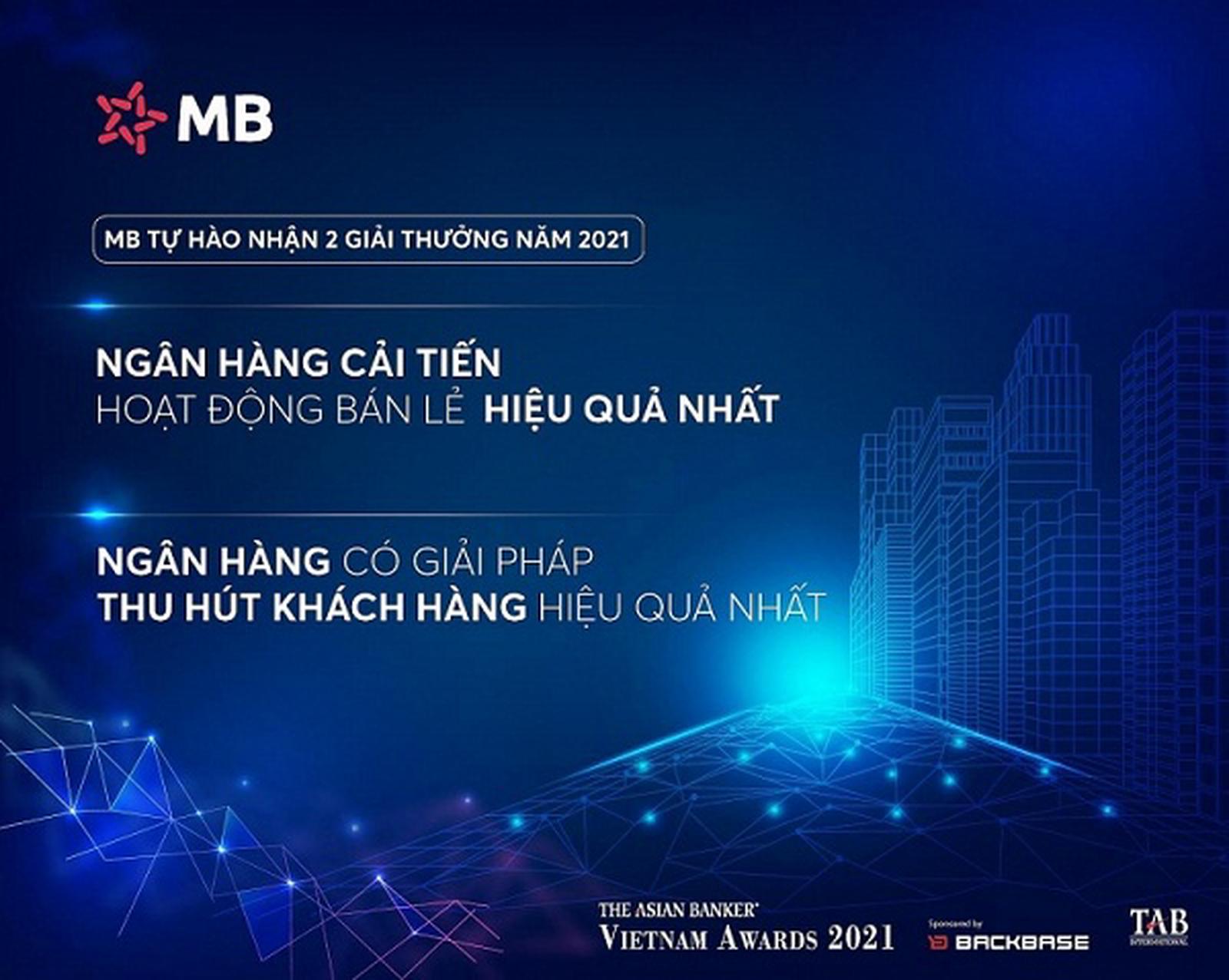 Đánh giá của The Asian Banker được xét trên các tiêu chí về hiệu quả kinh doanh, sức mạnh thương hiệu, chiến lược phát triển, trải nghiệm của khách hàng, năng lực bán hàng, ứng dụng công nghệ và hành trình chuyển đổi. Trong đó, MB dẫn đầu trong số các ngân hàng Việt về hành trình chuyển đổi số nhờ sự đầu tư lớn và bài bản cho hệ thống công nghệ thông tin – đây là nền tảng để MB tiên phong trong chuyển đổi số, tạo tăng trưởng đột phá về số lượng khách hàng.