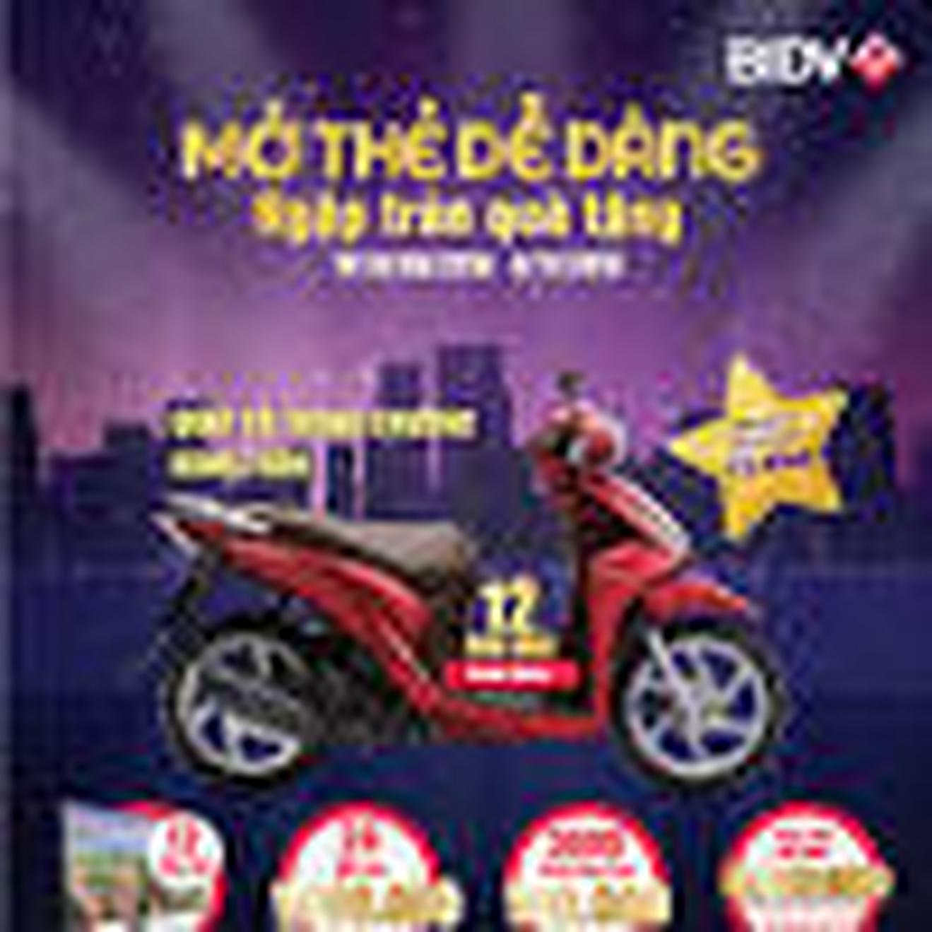 Chỉ cần sử dụng thẻ thanh toán mua hàng hoặc rút tiền trên máy ATM từ 200.000 đồng trở lên là khách hàng đã được tặng 01 mã số dự thưởng. BIDV sẽ thực hiện quay số hàng tuần để xác định ra những khách hàng may mắn trúng thưởng 01 giải nhất – xe máy Honda Vision trị giá 30 triệu đồng, 01 giải nhì – tivi Samsung Led 40 inch trị giá 8 triệu đồng, 02 giải ba – 1 triệu đồng tiền thưởng.