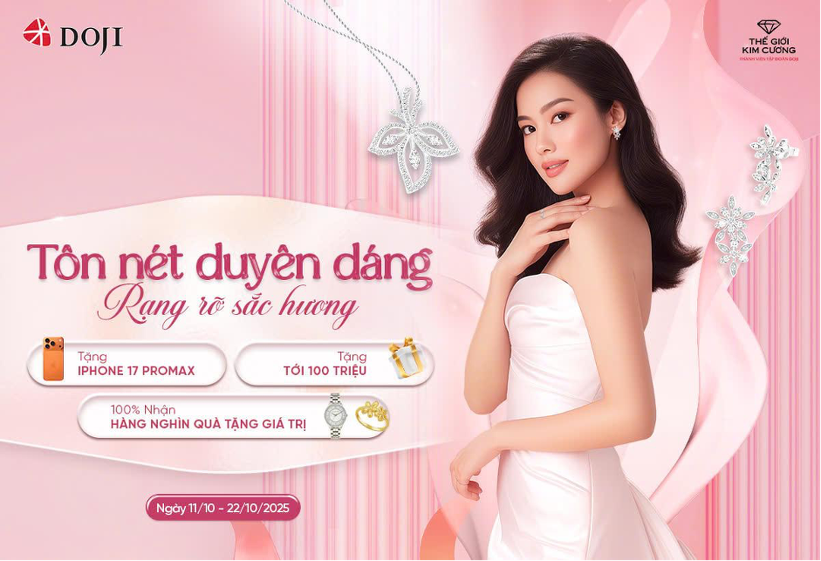 (Thanh tra) - Hướng tới ngày Phụ nữ Việt Nam 20/10 - dịp tri ân một nửa thế giới, DOJI và Thế Giới Kim Cương mang tới những bộ sưu tập (BST) trang sức tinh tuyển cùng chương trình ưu đãi đặc biệt với phần quà lên tới 100 triệu đồng cùng siêu phẩm iPhone 17 Pro Max.