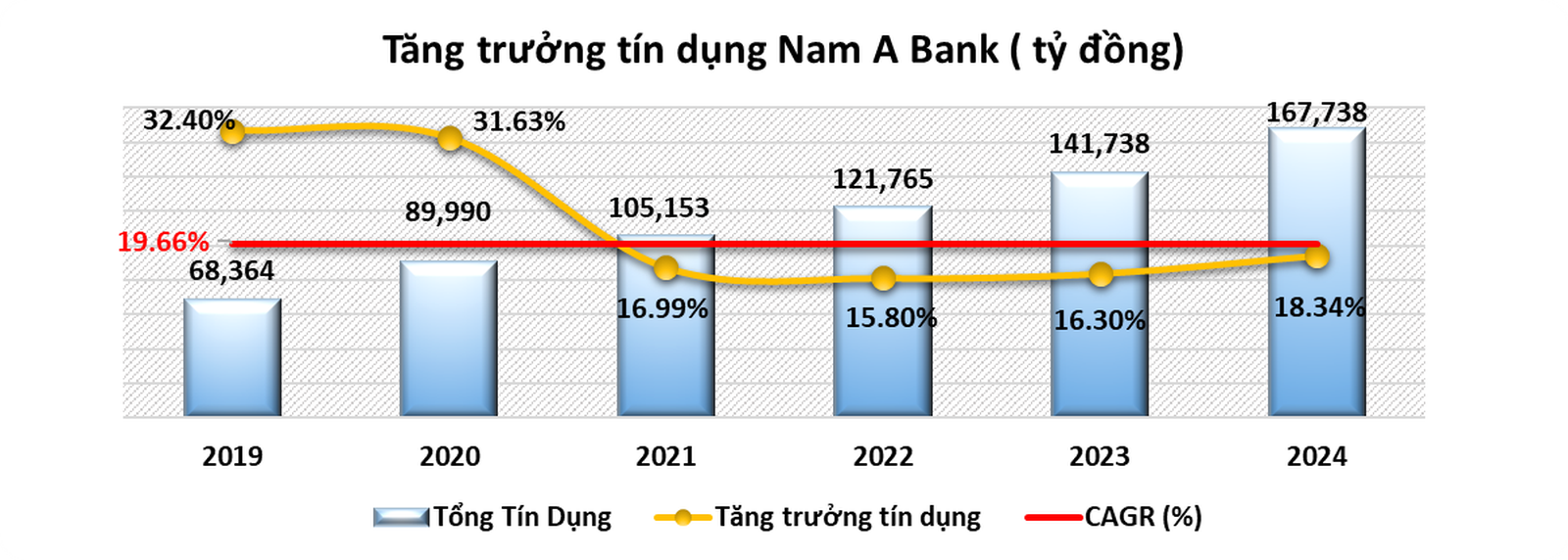 Trong năm 2024, hoạt động tín dụng của Nam A Bank đạt gần 168.000 tỷ đồng, tăng 18,34% so với đầu năm.