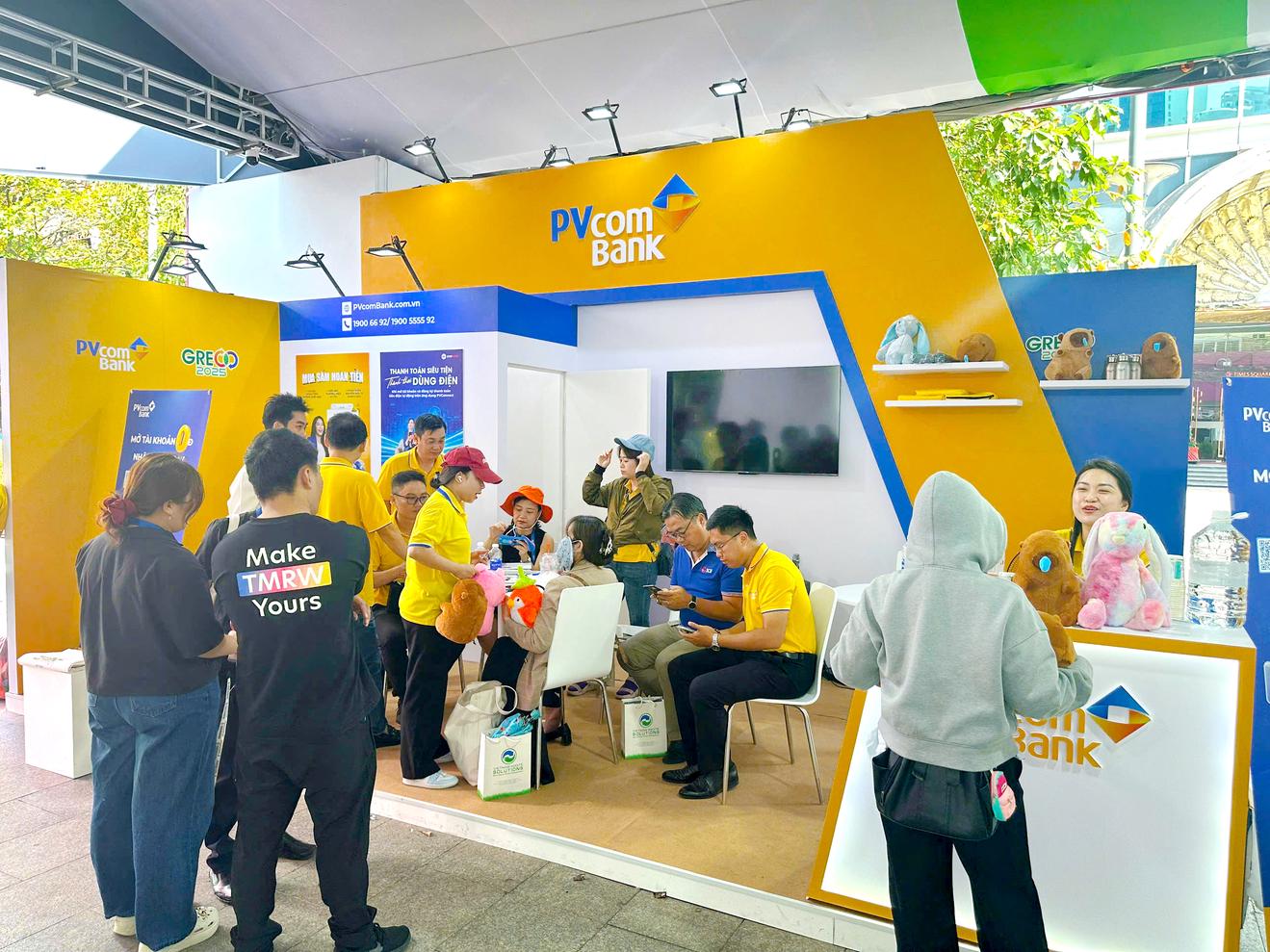 Gian hàng của PVcomBank tại GRECO 2025 thu hút khách hàng với nhiều hoạt động số hóa hiện đại