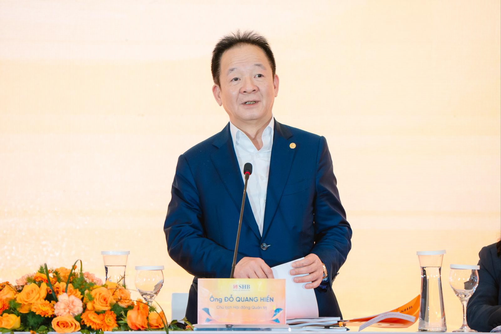 Đại hội đồng cổ đông lần thứ 33 ngân hàng SHB diễn ra thành công tốt đẹp. Các cổ đông tham dự đại hội đã nhất trí thông qua tất cả các nội dung với tỷ lệ tán thành gần như tuyệt đối. Đại diện SHB, Chủ tịch HĐQT Đỗ Quang Hiển cam kết: Kế thừa truyền thống 32 năm và nền tảng tài chính vững mạnh, HĐQT, Ban điều hành và toàn thể cán bộ nhân viên SHB tiếp tục phát huy văn hóa doanh nghiệp, tinh thần đoàn kết, tự tin, tự lực, tự cường, tự hào dân tộc, liên tục học hỏi, đổi mới tư duy trong cách nghĩ, cách làm, sáng tạo, hiệu quả, quyết tâm thực hiện thành công mục tiêu chiến lược và kế hoạch kinh doanh ĐHĐCĐ thông qua.