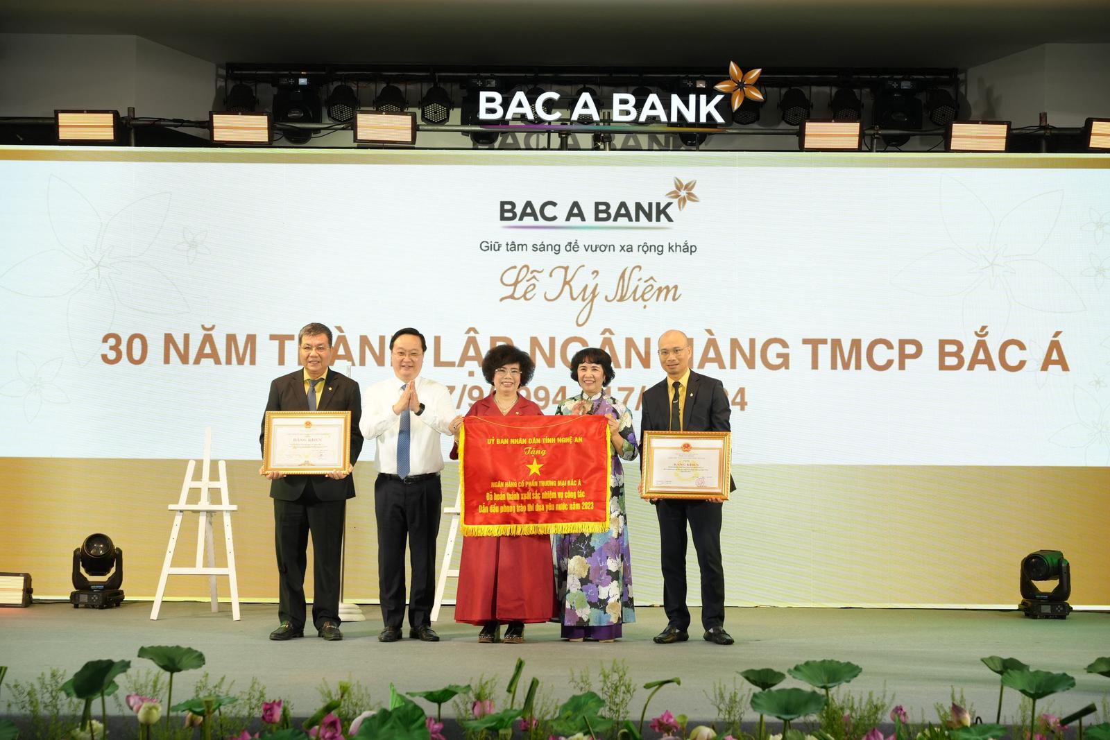 Ngày 17/09/2024 tại thành phố Vinh, Nghệ An; Ngân hàng TMCP Bắc Á đã long trọng tổ chức Lễ kỷ niệm 30 năm thành lập với sự tham gia của đại diện các bộ ban ngành cùng các cán bộ nhân viên nhiều thế hệ. Ghi nhận thành tích của những tập thể và cá nhân đã đóng góp cho hoạt động của Ngân hàng, Thống đốc Ngân hàng Nhà nước Việt Nam đã trao tặng Bằng khen cho Ngân hàng TMCP Bắc Á và bằng khen cho các tập thể và cá nhân thuộc Ngân hàng TMCP Bắc Á vì những thành tích xuất sắc trong hoạt động ngành Ngân hàng. Ủy ban nhân dân tỉnh Nghệ An đã tặng Cờ Thi đua xuất sắc cho Ngân hàng TMCP Bắc Á và tặng Bằng khen cho tập thể và cá nhân trực thuộc BAC A BANK vì những thành tích xuất sắc trong sự nghiệp xây dựng và phát triển kinh tế tỉnh Nghệ An.