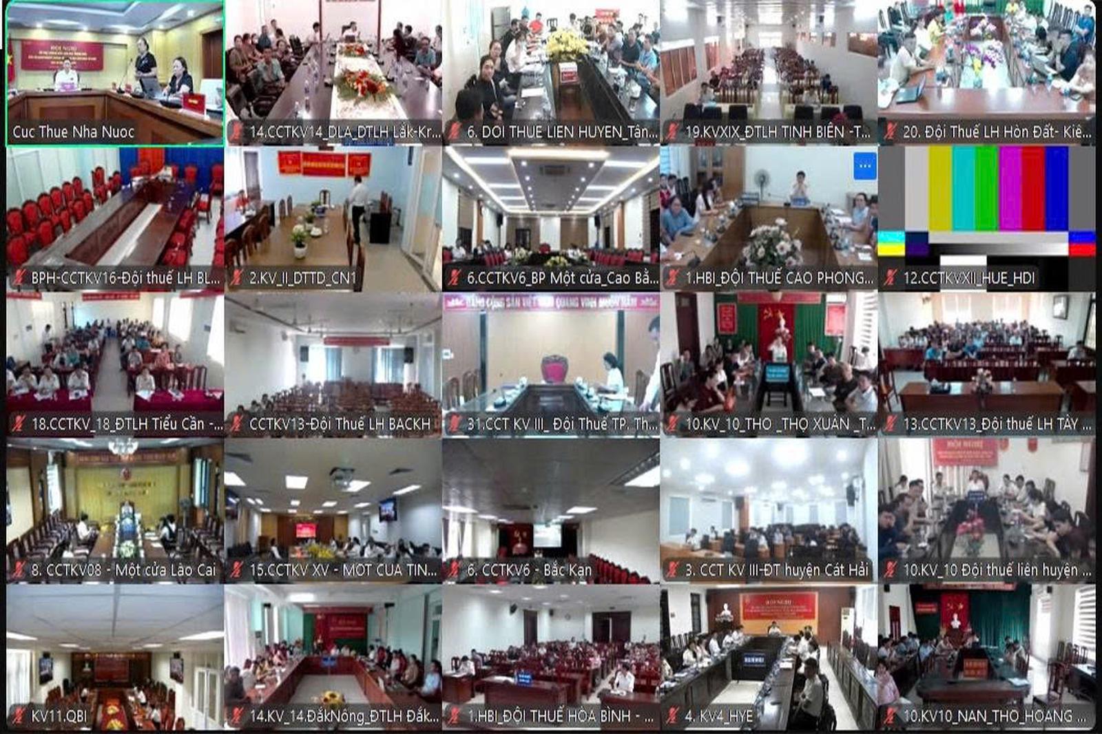 Hội nghị được ngành Thuế tổ chức trên phạm vi toàn quốc, có sự tham dự của công chức ngành thuế tại điểm cầu Cục Thuế, 20 Chi cục Thuế khu vực, bộ phận một cửa Chi cục Thuế khu vực và điểm cầu 350 Đội Thuế cấp huyện. Ảnh: CT
