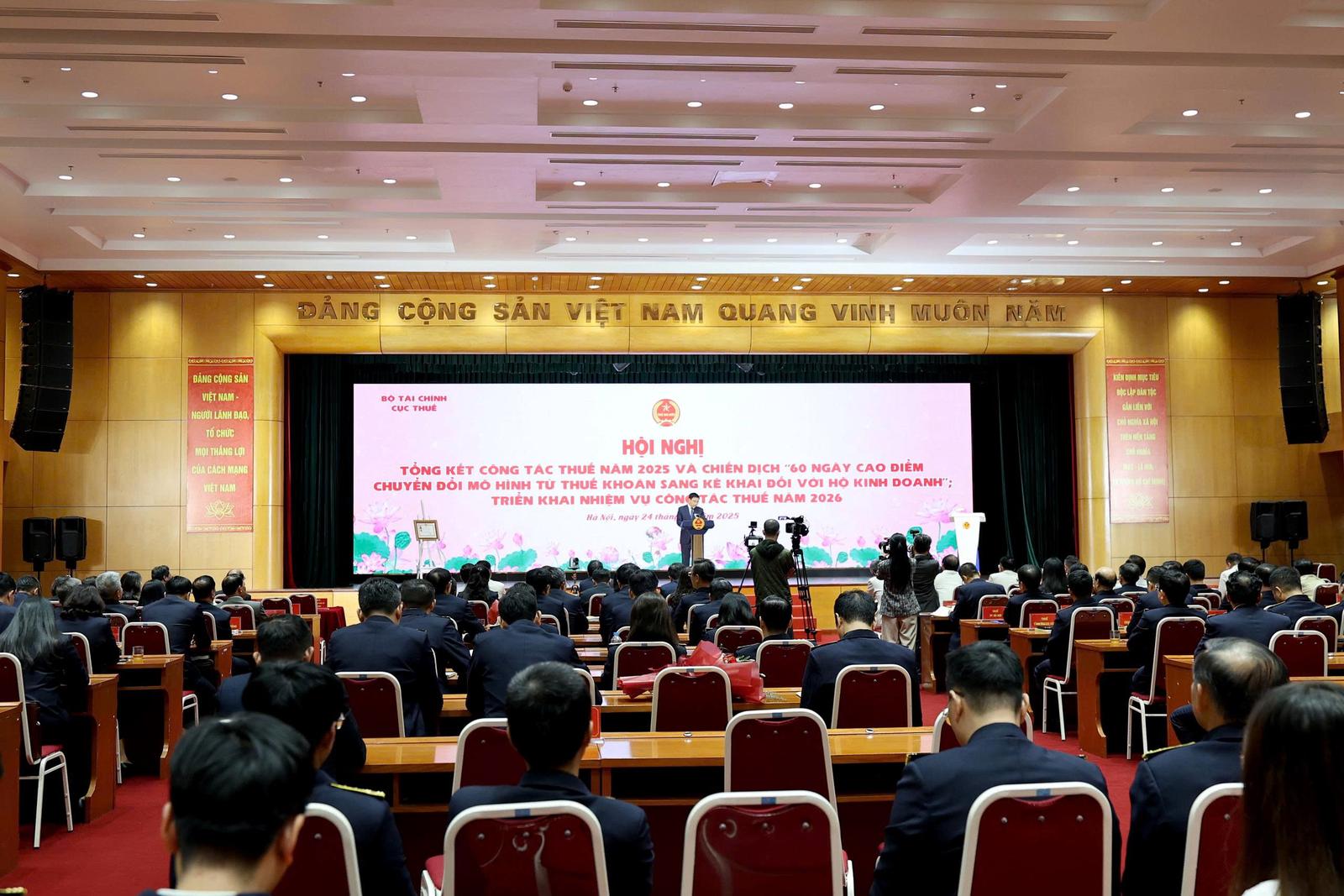 Chiều 24/12, ngành Thuế tổ chức Hội nghị tổng kết công tác thuế năm 2025 và chiến dịch “60 ngày cao điểm chuyển đổi mô hình từ thuế khoán sang kê khai đối với hộ kinh doanh”; triển khai nhiệm vụ công tác thuế năm 2026.