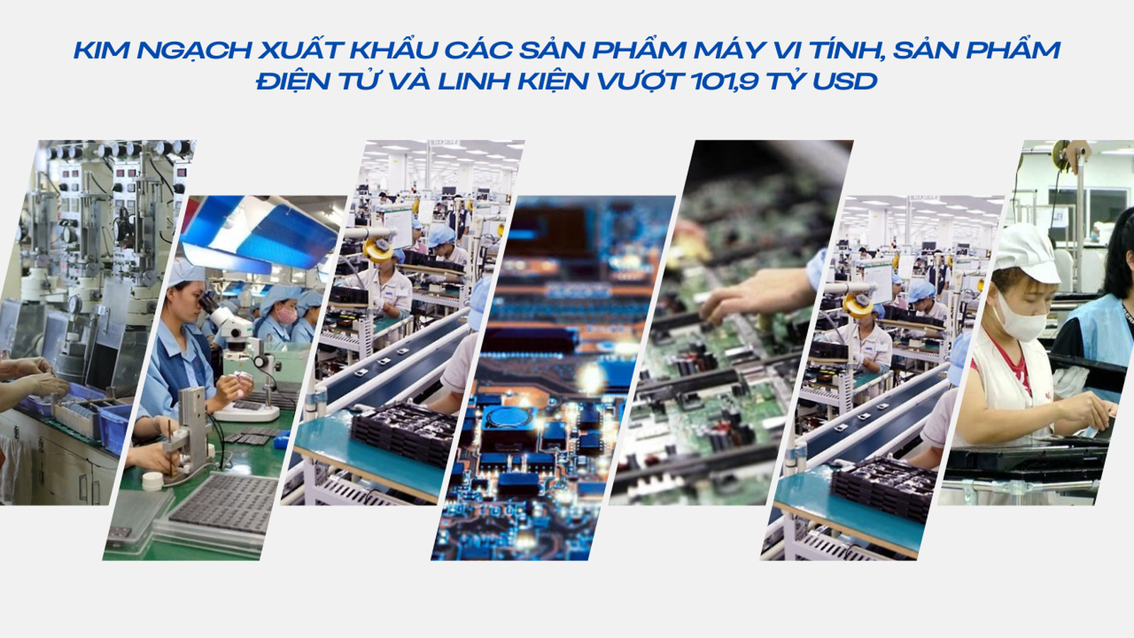 Điểm nhấn nổi bật nhất trong cơ cấu xuất khẩu tiếp tục thuộc về nhóm máy vi tính, sản phẩm điện tử và linh kiện. Riêng nửa đầu tháng 12, kim ngạch nhóm hàng này đạt gần 5 tỷ USD. Tính chung từ đầu năm đến nay, kim ngạch đã vượt 101,9 tỷ USD, đánh dấu lần đầu tiên một nhóm hàng xuất khẩu của Việt Nam cán mốc 100 tỷ USD.