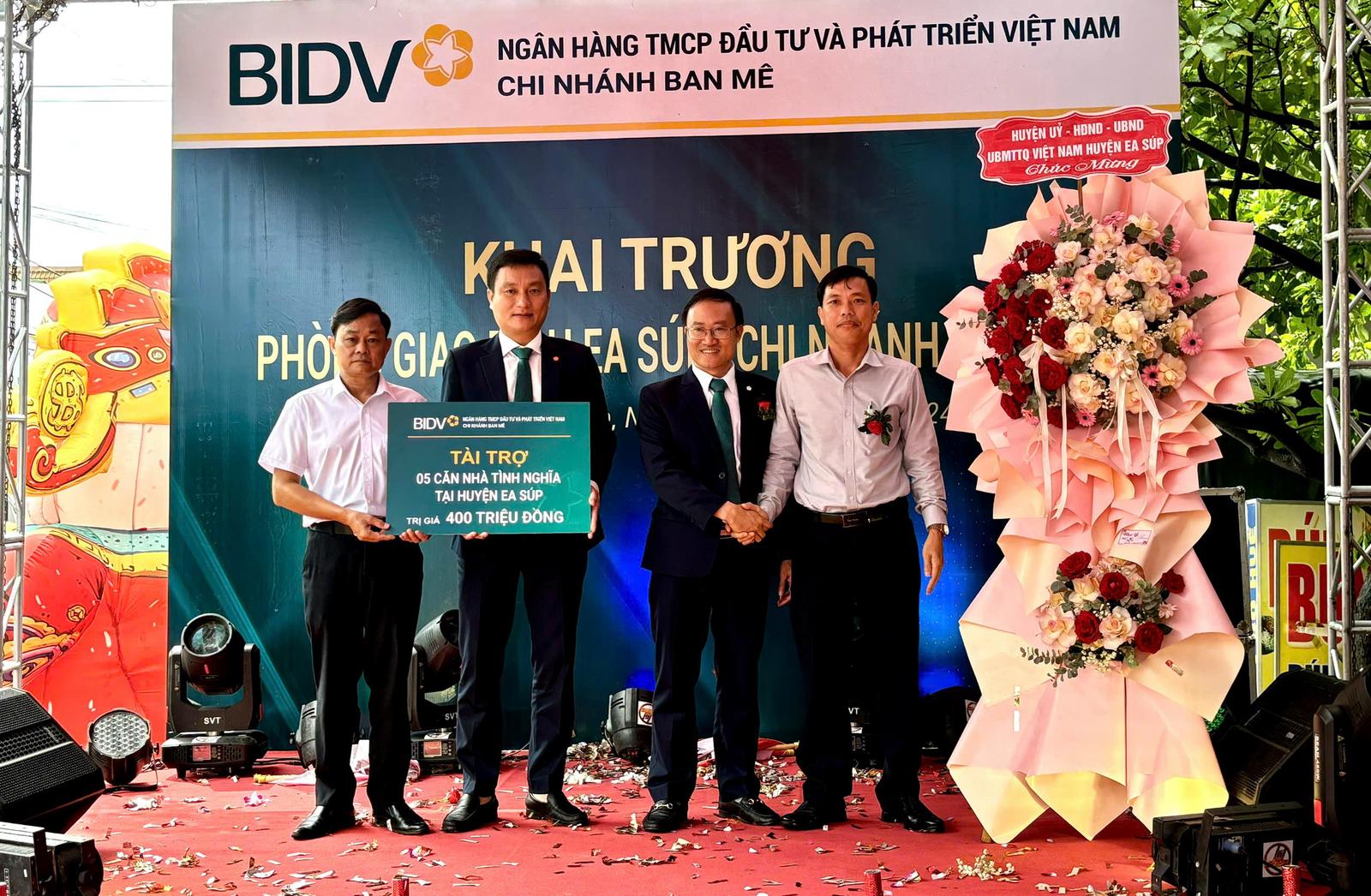 Nhân dịp khai trương, BIDV - Chi nhánh Ban Mê tặng 5 căn nhà Đại đoàn kết cho 5 gia đình có hoàn cảnh khó khăn trên địa bàn huyện Ea Súp. Ảnh: Anh Minh