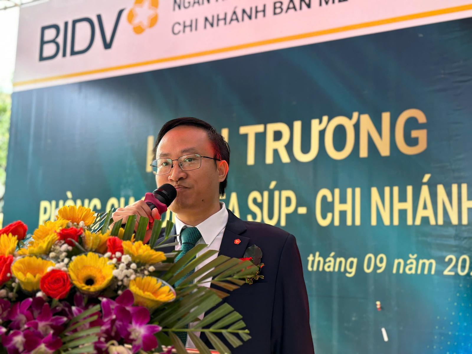 Ông Nguyễn Danh Đức - Bí thư Chi bộ, Giám đốc BIDV Chi nhánh Ban Mê phát biểu tại lễ khai trương. Ảnh: Anh Minh