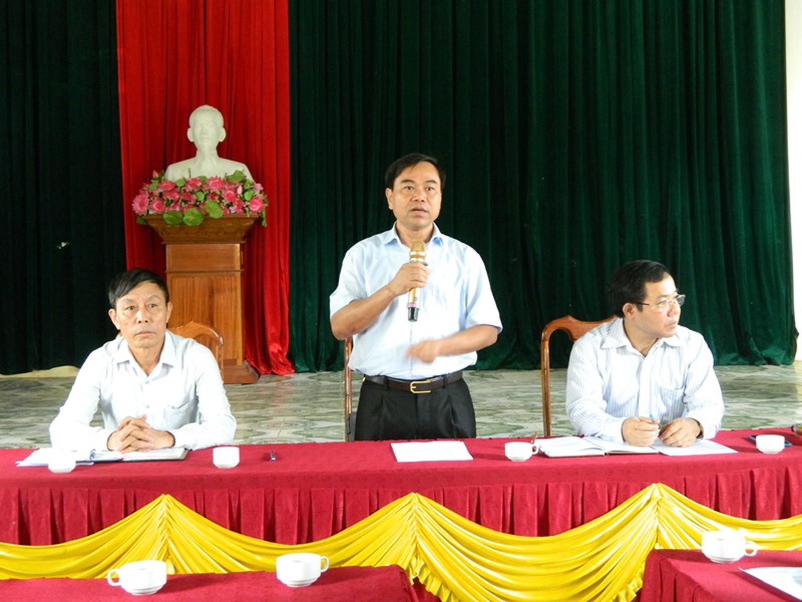 Chủ tịch UBND huyện Cẩm Xuyên Phạm Đăng Nhật đề nghị phía Tổng Cổng ty Sông Đà tiếp thu ý kiến, đề xuất Bộ Giao thông Vận tải có phương án giải quyết và trả lời cho dân. Ảnh: HY
