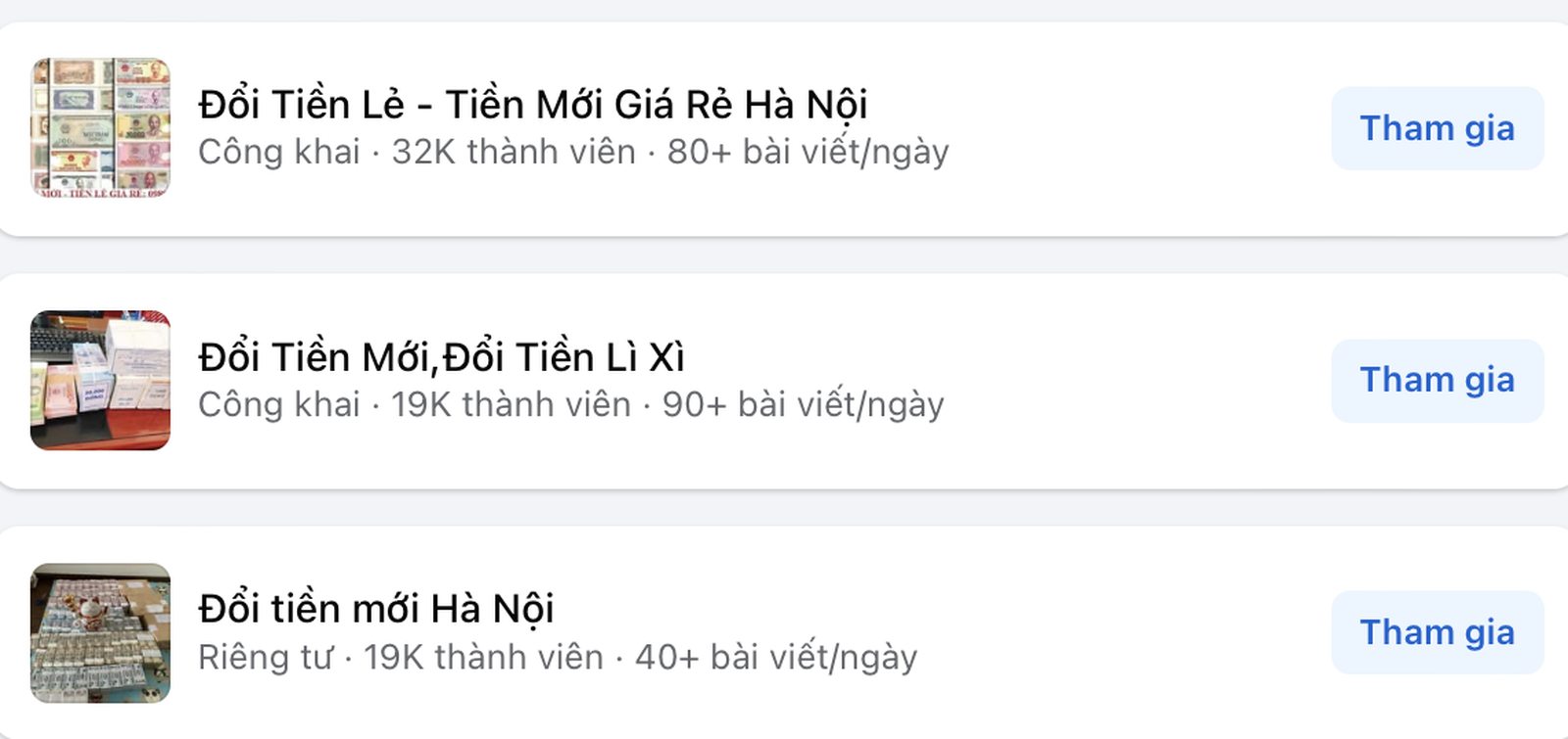 Chỉ cần vài thao tác tìm kiếm, người dùng có thể dễ dàng bắt gặp hàng loạt tài khoản, hội nhóm quảng cáo nhận đổi tiền mới, tiền lì xì với những lời mời gọi hấp dẫn như “tiền mới nguyên sê-ri”, “đủ mệnh giá”, “giao tận nơi trong ngày”. Tuy nhiên, đằng sau sự tiện lợi được quảng bá là mức phí cao và hàng loạt rủi ro tiềm ẩn đối với người sử dụng dịch vụ.