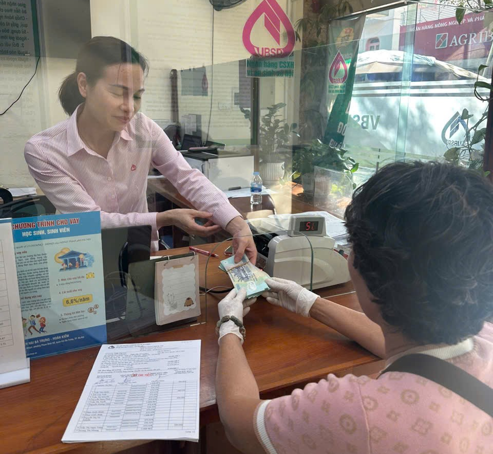 Giải ngân cho khách hàng vay vốn tại Trụ sở Phòng Giao dịch.