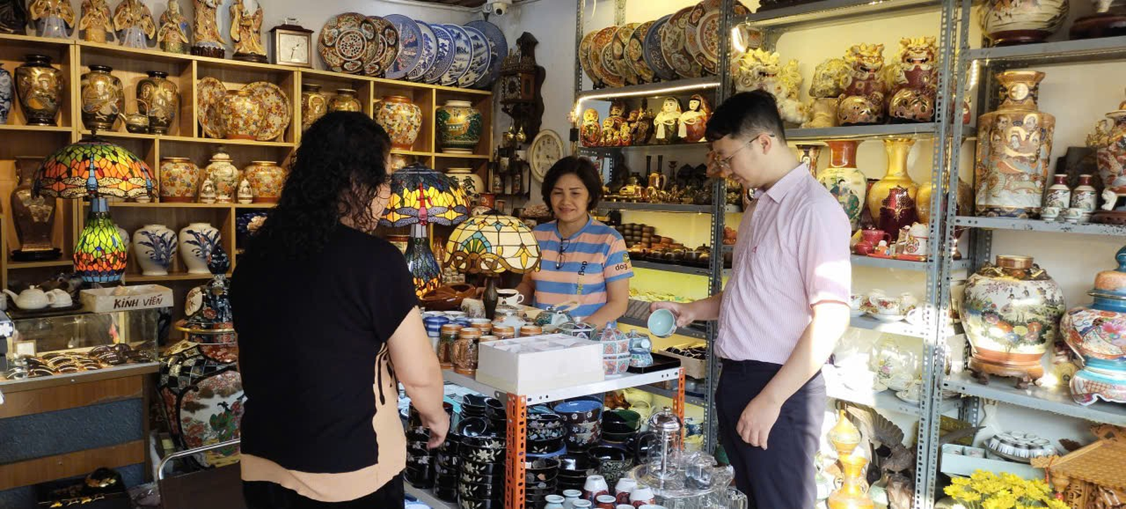 Cửa hàng kinh doanh đồ gốm sứ và đồ gia dụng của chị Nguyễn Thị Hồng Lan, tổ 25, phường Hai Bà Trưng.