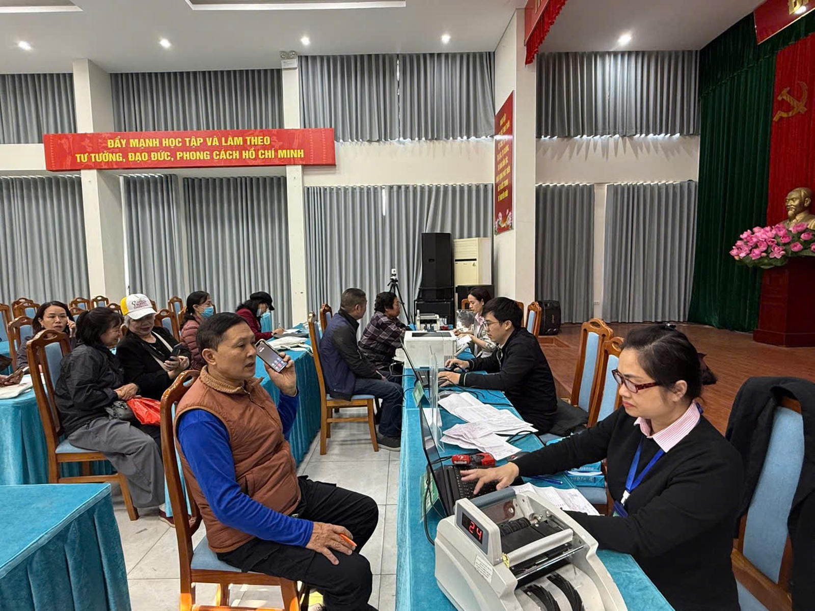 Tại đây, cán bộ ngân hàng cùng các hội đoàn thể thực hiện trọn vẹn các nghiệp vụ: tiếp nhận hồ sơ vay, thu lãi, thu nợ, giải đáp thắc mắc, đối chiếu dư nợ và công khai thông tin tài chính.