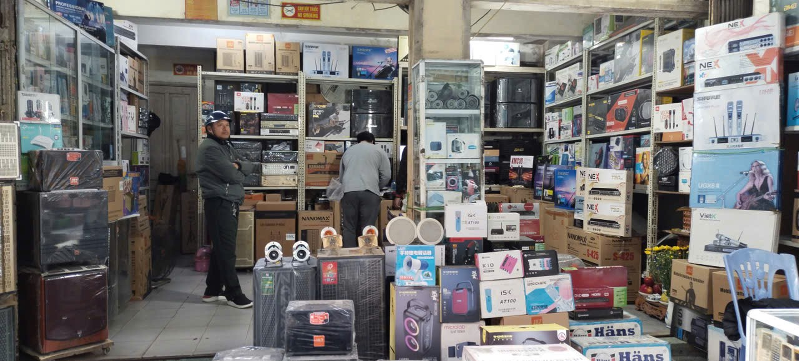 Từ nguồn vốn vay NHCSXH Hai Bà Trưng, chị Ngô Thị Tính, tổ 40 đã mở rộng kinh doanh cửa hàng điện tử, thiết bị âm thanh của gia đình.