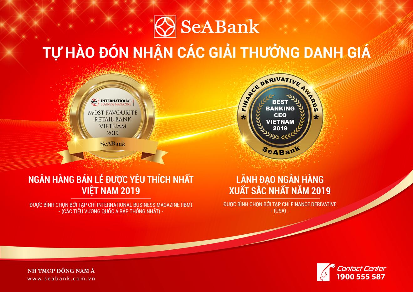 Với những nỗ lực, thành quả trên, SeABank còn được vinh danh ở nhiều hạng mục giải thưởng khác: “Top 100 Giải thưởng Sao Vàng đất Việt năm 2018”, “Top 10 Doanh nghiệp bền vững 2018 trong lĩnh vực Thương mại - Dịch vụ”, “Thương hiệu mạnh ASEAN 2019”, “TOP 500 Doanh nghiệp lớn nhất Việt nam VNR500”, “Thương hiệu xuất sắc trong lĩnh vực Tiết kiệm ngân hàng 2018”, “Thương hiệu tiêu biểu châu Á - Thái Bình Dương năm 2019” …