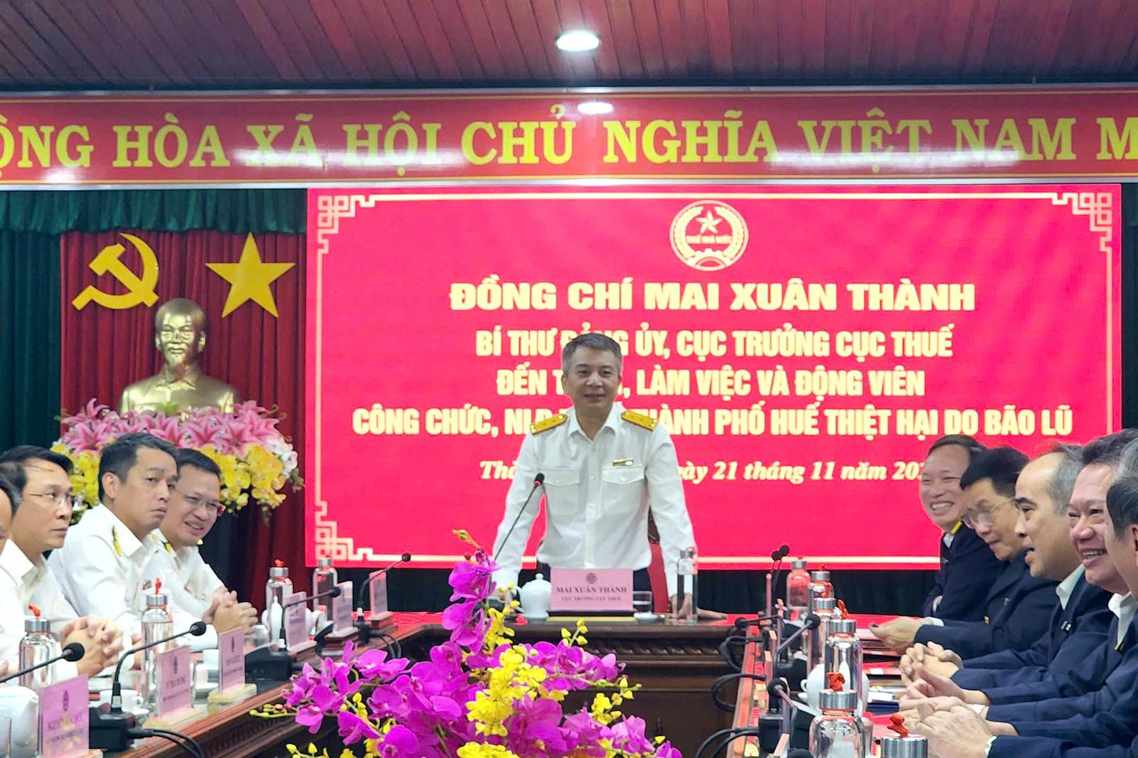 Cũng trong ngày 21/11, Đoàn công tác của Cục Thuế đã đến thăm và làm việc với Thuế TP Huế để chỉ đạo nhiệm vụ công tác thuế năm 2025 trong bối cảnh TP Huế vừa trải qua trận lũ lụt kéo dài.