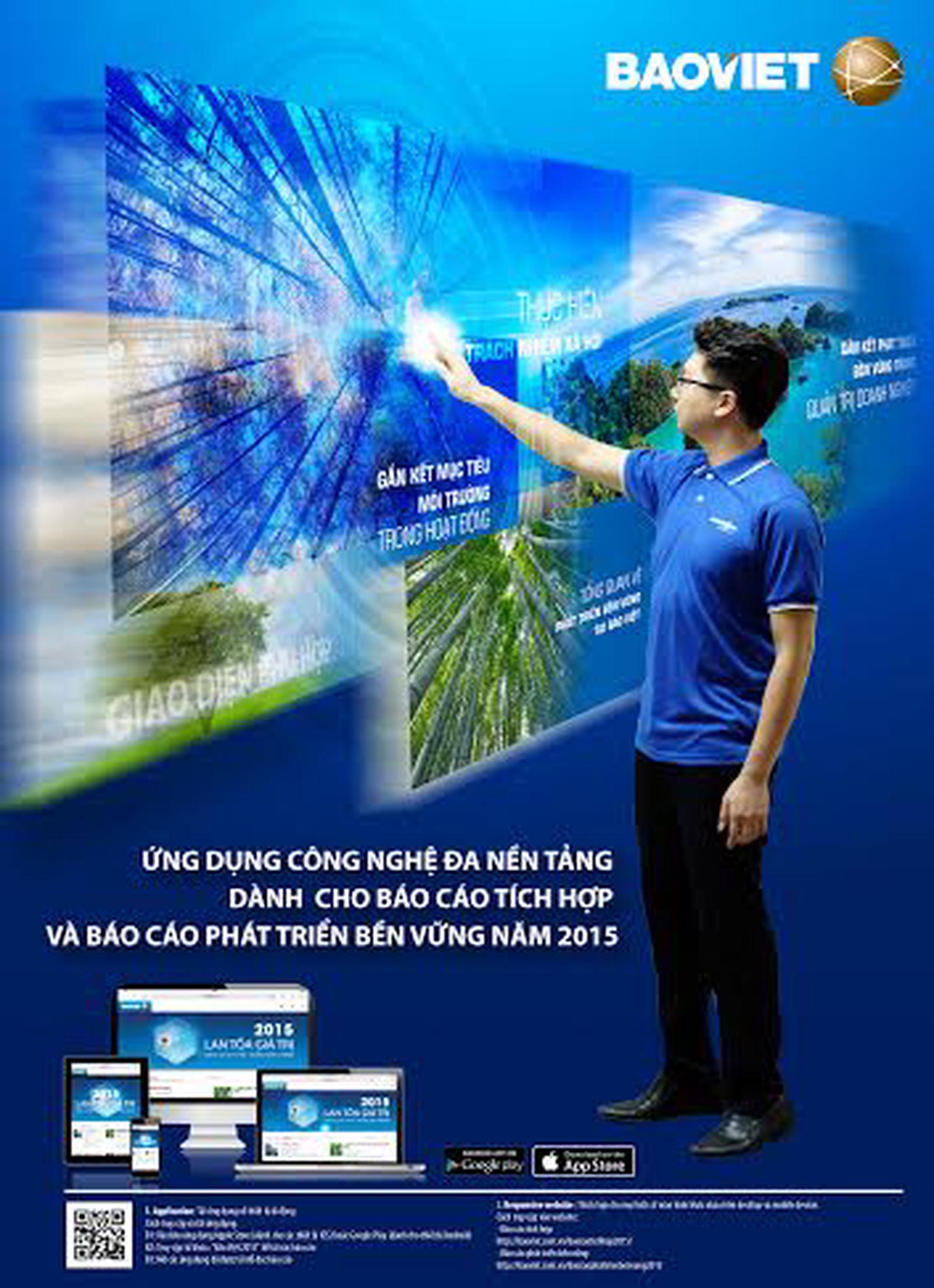Nằm trong mục tiêu xanh hóa các hoạt động kinh doanh, Bảo Việt đã giảm số lượng báo cáo bản in và thay vào đó là các phiên bản điện tử trên điện thoại di động và trên website chính thức của Tập đoàn Bảo Việt. Với thiết kế hài hòa và được lập trình trên cả 2 nền tảng di động và website, Bảo Việt mong muốn mang đến trải nghiệm mới cho người đọc thông qua việc ứng dụng công nghệ đa nền tảng trong phát hành Báo cáo.