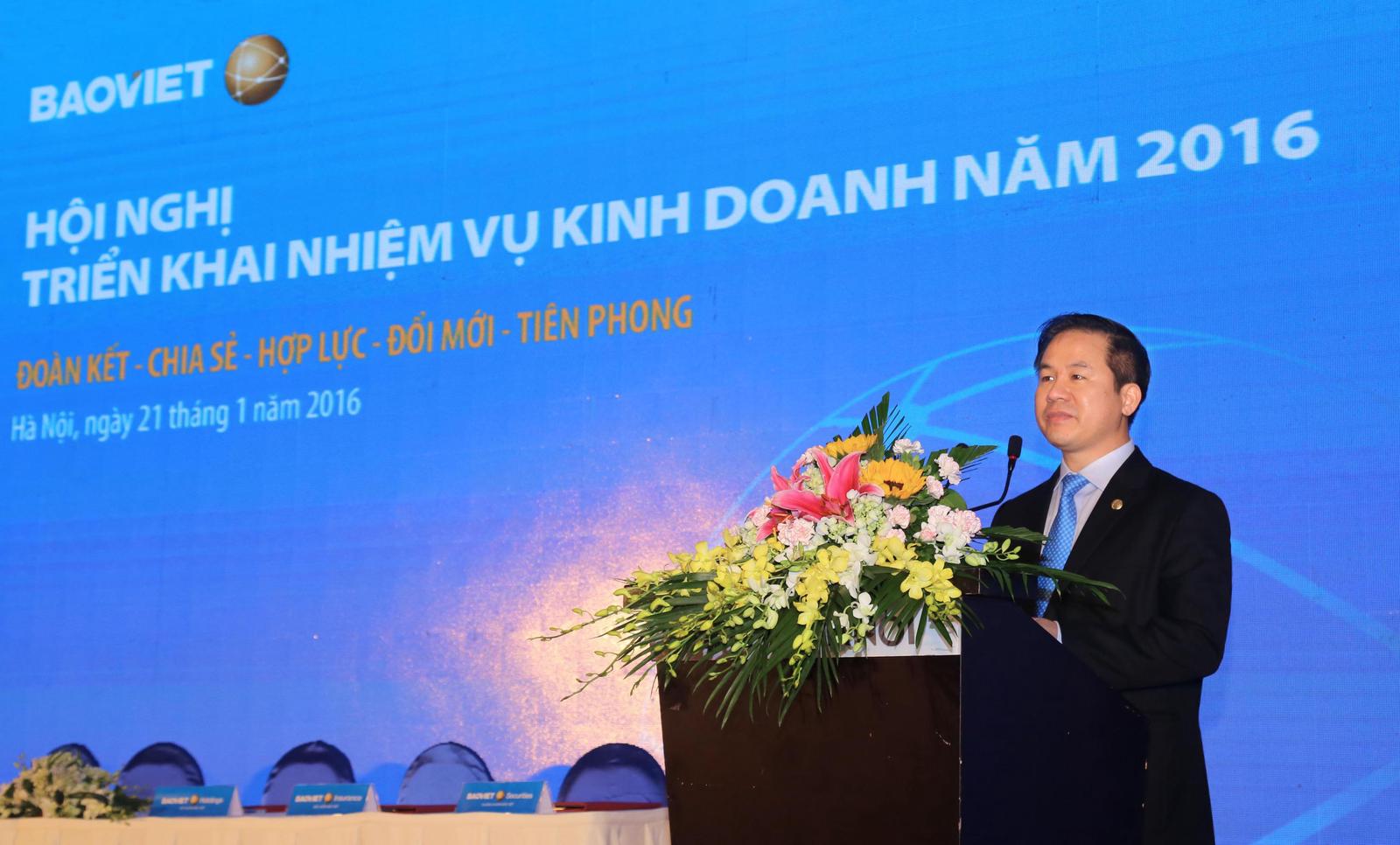 Phát biểu tại Hội nghị, ông Đào Đình Thi - Chủ tịch Hội đồng Quản trị Tập đoàn Bảo Việt đã chỉ đạo các định hướng, mục tiêu và giải pháp cần tập trung triển khai trong năm 2016. Đây là năm khởi đầu của chiến lược 5 năm (2016-2020) hướng tới một Bảo Việt có năng lực cạnh tranh quốc tế và là định chế tài chính hàng đầu tại Việt Nam đến năm 2020. Do vậy, để quyết tâm hoàn thành và hoàn thành vượt mức kế hoạch kinh doanh năm 2016, Bảo Việt sẽ tập trung vào các giải pháp tăng cường năng lực tài chính cho Công ty mẹ và các đơn vị thành viên; Tái cơ cấu danh mục đầu tư, đầu tư xây dựng trụ sở, văn phòng làm việc; Hoàn thiện mô hình kinh doanh tập trung, tăng cường triển khai công tác quản trị nguồn nhân lực; Đầu tư nghiên cứu, phát triển các sản phẩm và gói sản phẩm tích hợp các tính năng bảo hiểm - tài chính - đầu tư nhằm đáp ứng nhu cầu đa dạng của khách hàng; Đầu tư mở rộng quy mô, mạng lưới kinh doanh, phát triển thương hiệu; Phát triển hệ thống phân phối đa kênh (đại lý, tư vấn viên, môi giới, bancassurance, telesales, digital, online); Đầu tư mạnh vào hạ tầng và ứng dụng công nghệ thông tin theo chuẩn quốc tế, đảm bảo tính đồng bộ, hiện đại, hiệu quả và an toàn nhằm tăng cư ờng năng lưc̣ quản tri ̣xuyên su ốt từ Tập đoàn tới các đơn vị thành viên nhằm tạo bứt phá trên mọi mặt hoạt động.