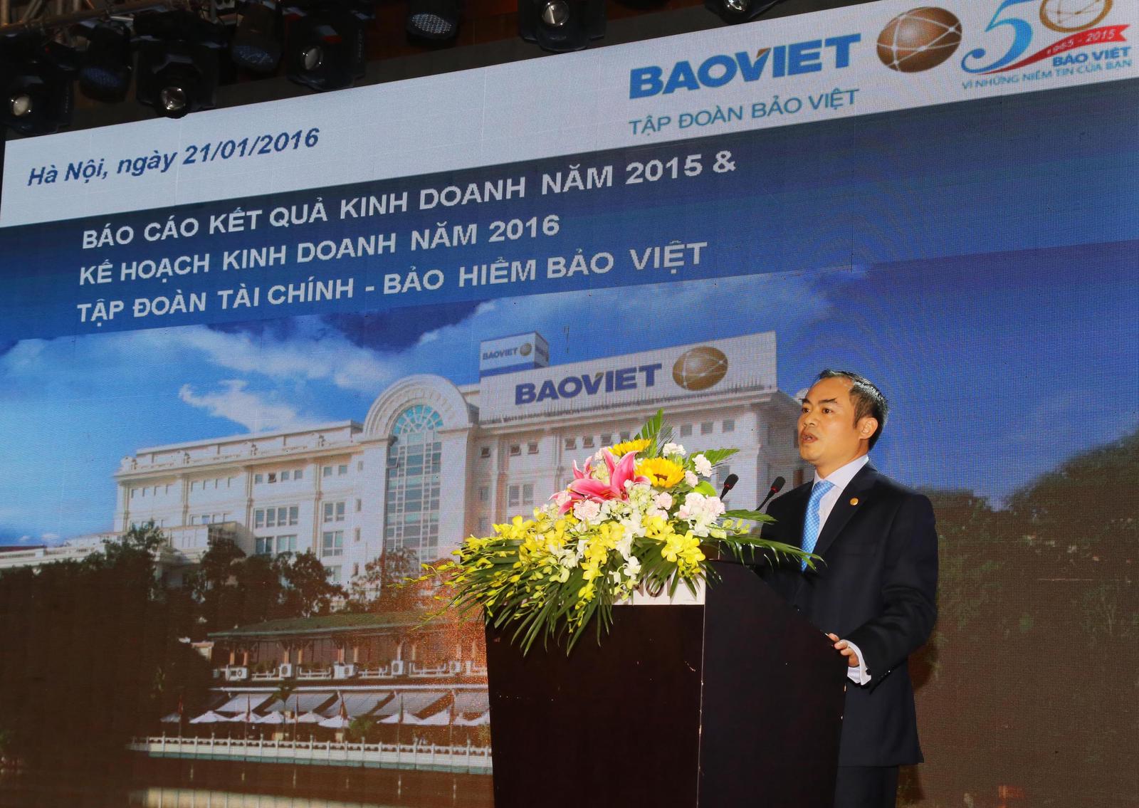 Tập đoàn Bảo Việt đã cơ bản hoàn thành đề án tái cơ cấu cho giai đoạn 2013-2015. Doanh thu hợp nhất năm 2015 ước đạt 20.807 tỷ đồng, tăng trưởng 9,2% so với cùng kỳ 2014. Lợi nhuận sau thuế hợp nhất ước đạt 1.187 tỷ đồng. Công ty Mẹ hoàn thành vượt kế hoạch các chỉ tiêu doanh thu và lợi nhuận, lợi nhuận sau thuế ước đạt 1.002 tỷ đồng. Doanh thu phí bảo hiểm từ lĩnh vực bảo hiểm phi nhân thọ ước đạt 6.471 tỷ đồng tăng trưởng 5,9%, trong đó doanh thu phí bảo hiểm gốc đạt 5.881 tỷ đồng, tăng trưởng 4%; Lợi nhuận sau thuế ước đạt 279 tỷ đồng. Lĩnh vực bảo hiểm nhân thọ đạt mức tăng trưởng ấn tượng với tổng doanh thu phí bảo hiểm đạt 10.100 tỷ đồng, tăng trưởng 26,9%; Doanh thu khai thác mới ước đạt 2.309 tỷ đồng, tăng trưởng 23,2% so với cùng kỳ 2014. Lợi nhuận sau thuế ước đạt 635 tỷ đồng. Lĩnh vực chứng khoán bám sát kế hoạch kinh doanh với doanh thu ước đạt 291 tỷ đồng, lợi nhuận sau thuế ước đạt 117 tỷ đồng. Lĩnh vực quản lý quỹ có tổng doanh thu đạt ước 58 tỷ đồng, tăng trưởng 12,1%. Lợi nhuận sau thuế ước đạt 15 tỷ đồng.
