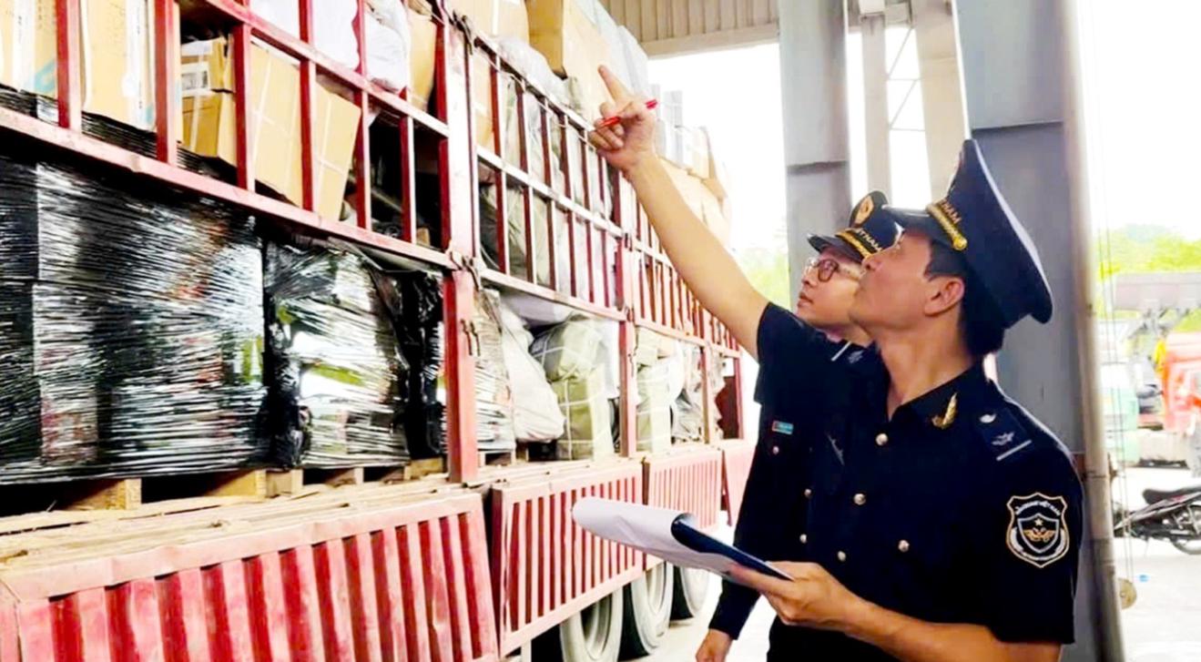 Cán bộ Hải quan cửa khẩu Quốc tế Hữu Nghị kiểm tra hàng hóa nhập khẩu qua cửa khẩu. Ảnh: BLS
