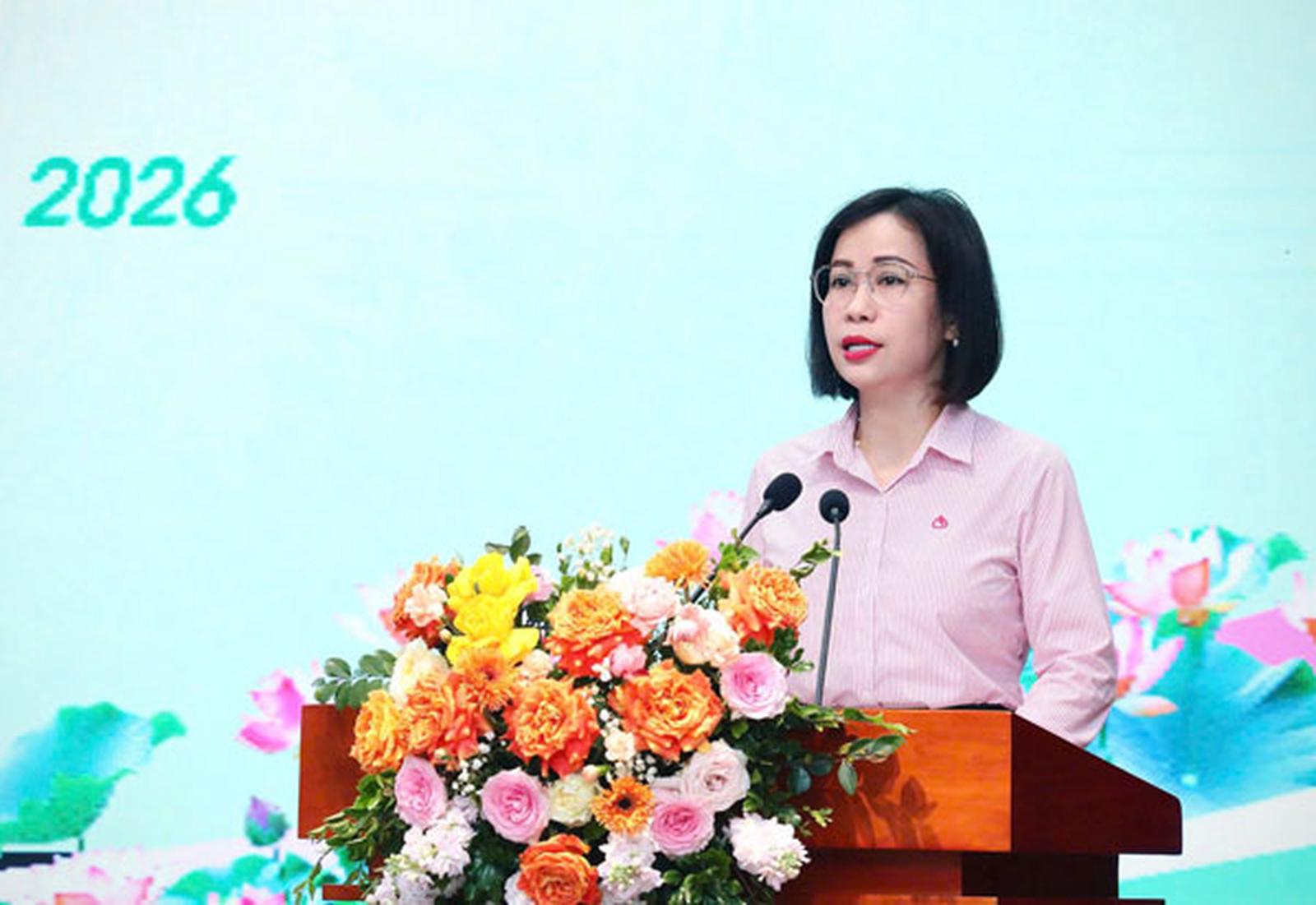 Phó Tổng Giám đốc Lê Thị Đức Hạnh báo cáo kết quả hoạt động quý I/2026