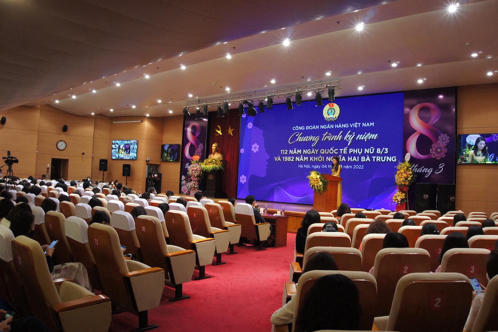 Trước đó, Hội nghị đã nghe bà Nguyễn Khánh Chi, Phó Chủ tịch Công đoàn NHVN ôn lại truyền thống của phụ nữ toàn thế giới, của người phụ nữ Việt Nam anh hùng, bất khuất, trung hậu, đảm đang và phát động đợt thi đua sâu rộng trong Nữ CBĐVNLĐ và các cấp công đoàn trong ngành Ngân hàng năm 2022.