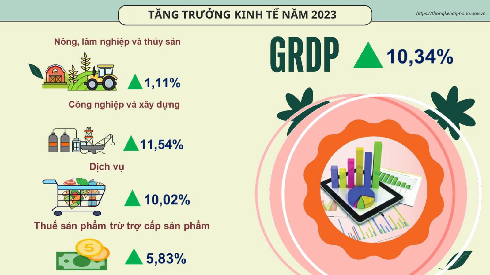 Năm 2023 kinh tế - xã hội thành phố tiếp tục ổn định và phát triển, một số chỉ tiêu kinh tế chủ yếu có sự tăng trưởng cao so cùng kỳ, một số chỉ tiêu tuy tăng thấp hơn so với cùng kỳ nhưng vẫn ở mức cao và vẫn đứng trong tốp đầu của cả nước như chỉ tiêu tốc độ tăng trưởng tổng sản phẩm trên địa bàn (GRDP) đứng thứ 5 cả nước.