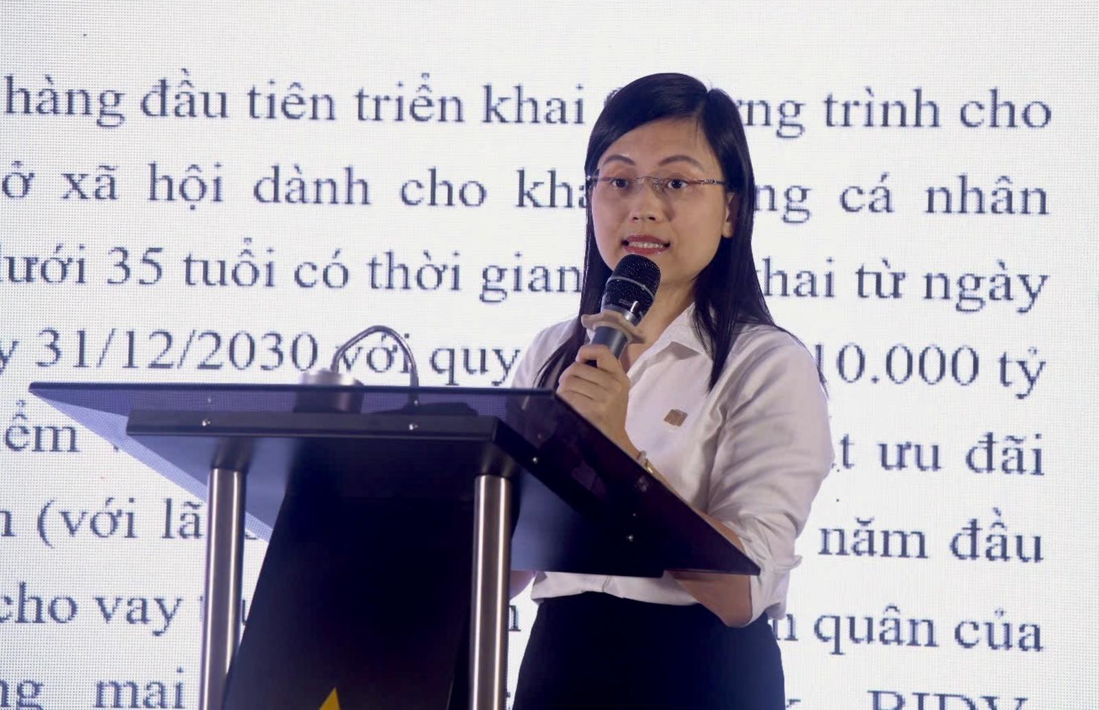 “Sản phẩm cho vay này sẽ giúp các bạn là những người trẻ tuổi có thu nhập trung bình - thấp được sở hữu nhà ở, tăng khả năng phát triển thu nhập trong tương lai, tăng động lực phát triển sự nghiệp và ổn định cuộc sống lâu dài tại đô thị”, bà Thủy nói.