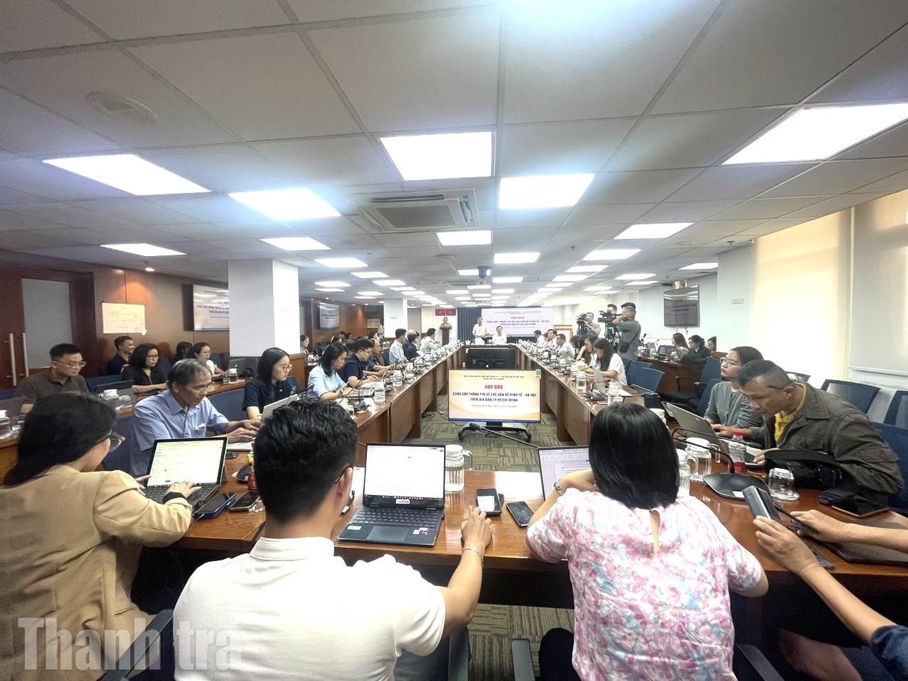 Buổi họp báo thông tin về các vấn đề kinh tế - xã hội trên địa bàn TPHCM. Ảnh: Thu Huyền