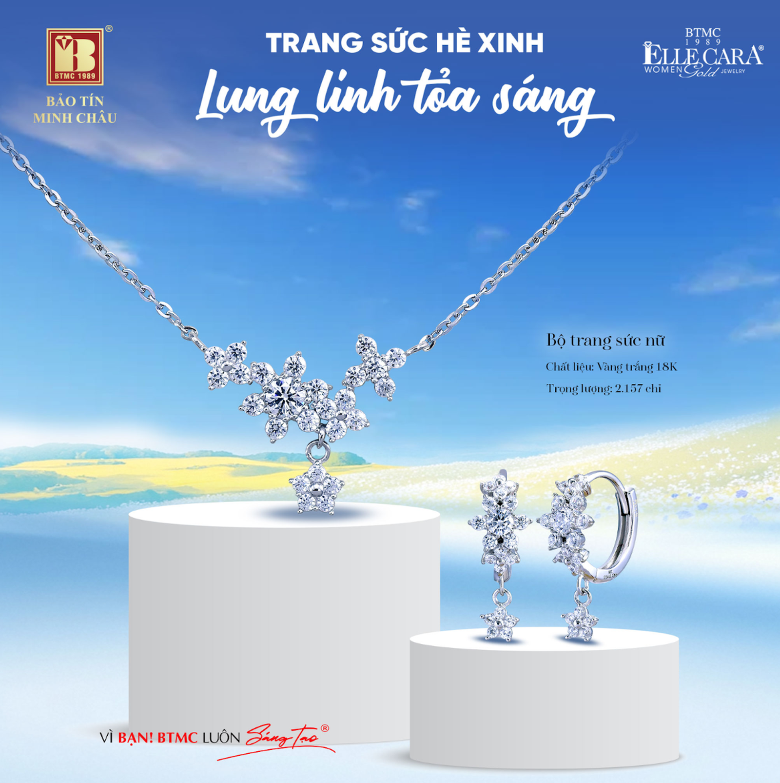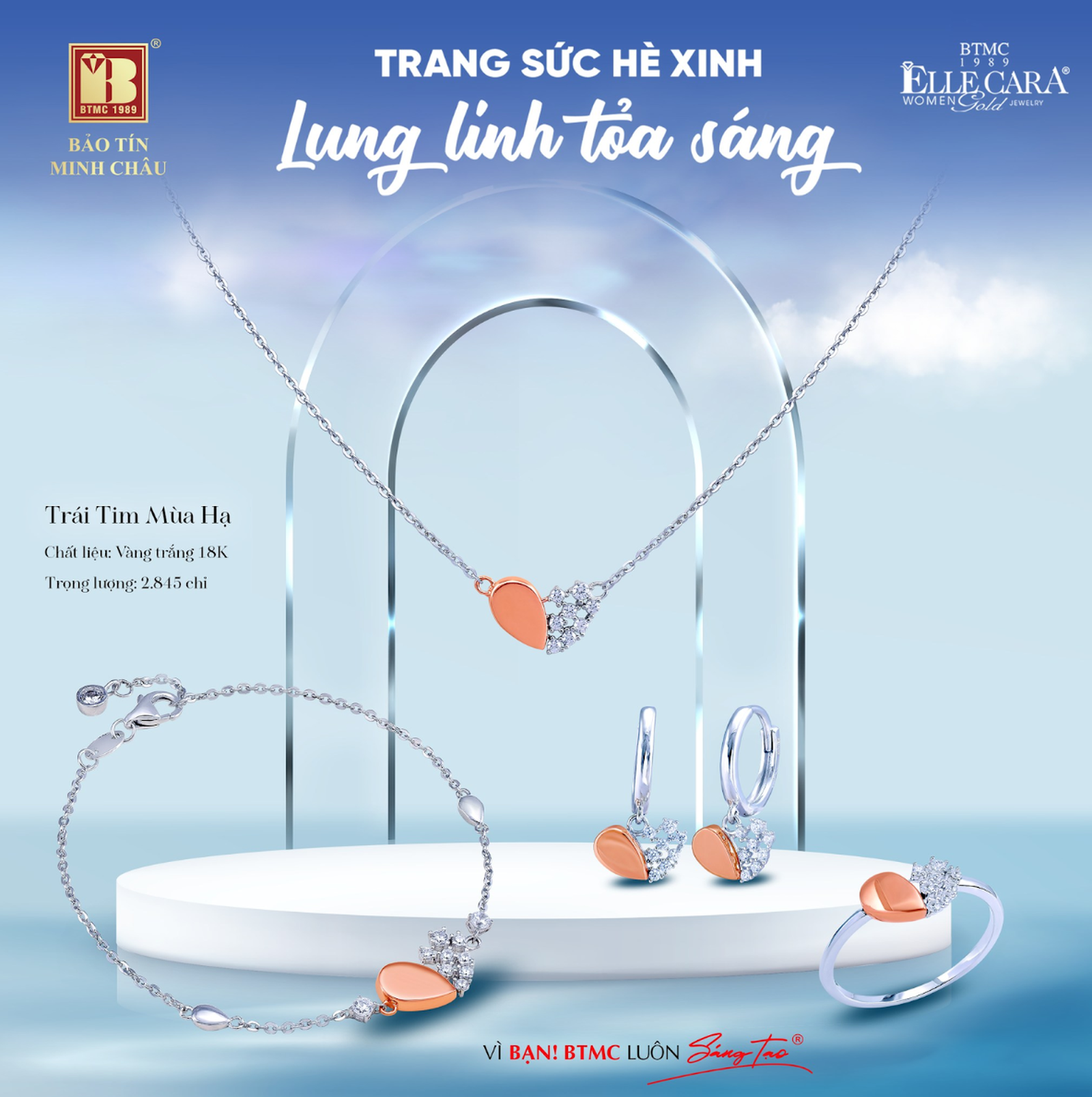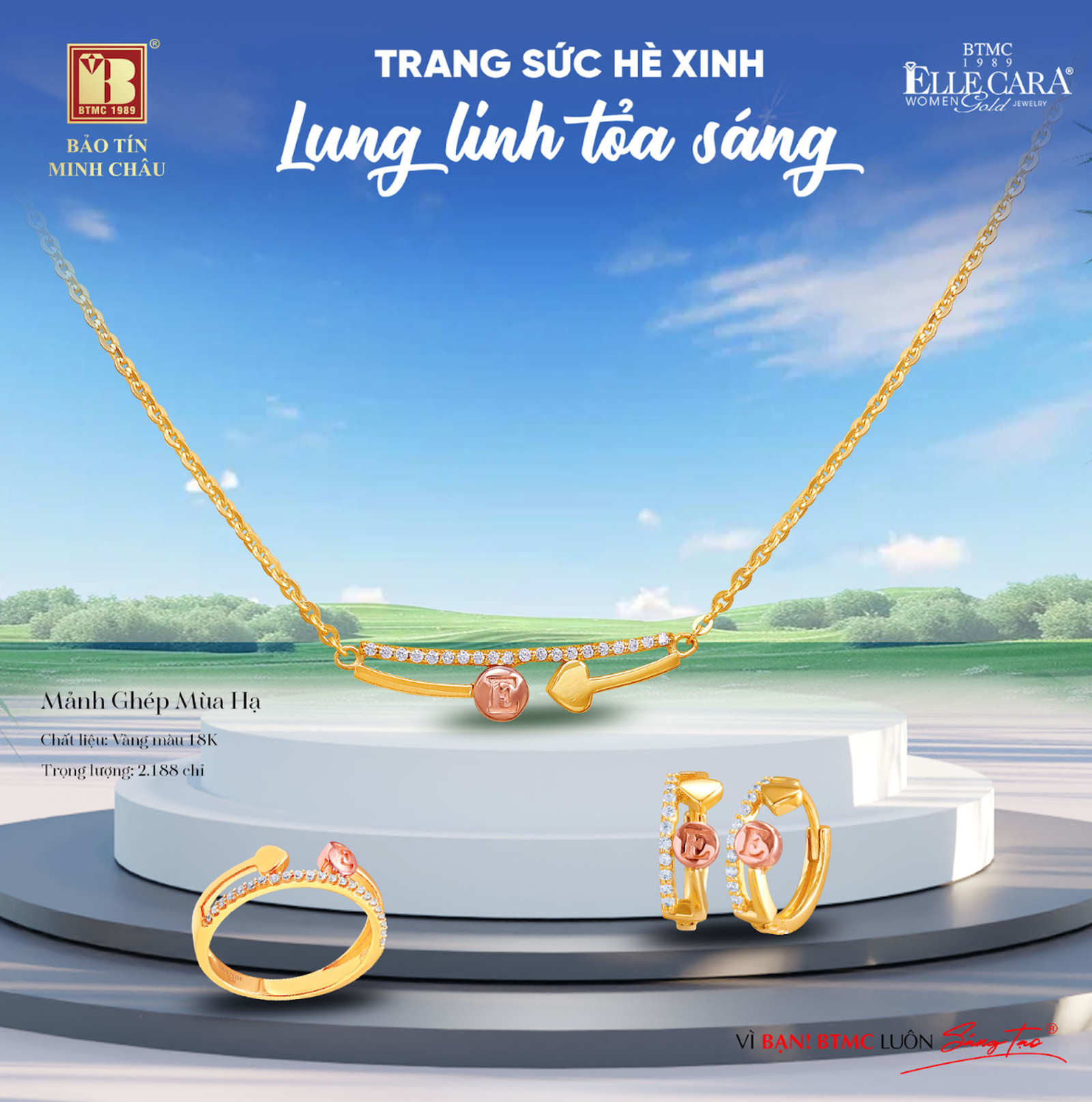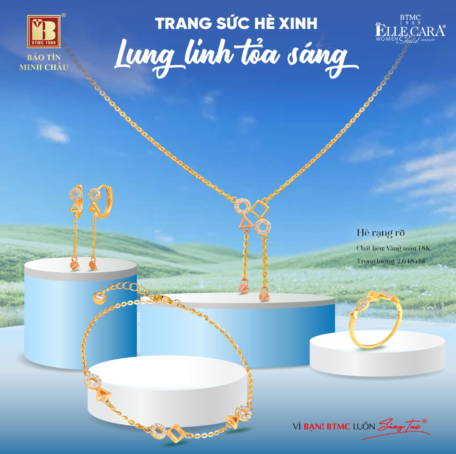 Lấy cảm hứng từ sắc màu rực rỡ và thanh âm của nắng gió mùa hè, Bảo Tín Minh Châu đã cho ra đời Bộ sưu tập trang sức Hè 2025 “TRANG SỨC HÈ XINH - LUNG LINH TỎA SÁNG” – một bản hòa ca tinh tế giữa nghệ thuật chế tác kim hoàn và phong cách thời trang quốc tế.