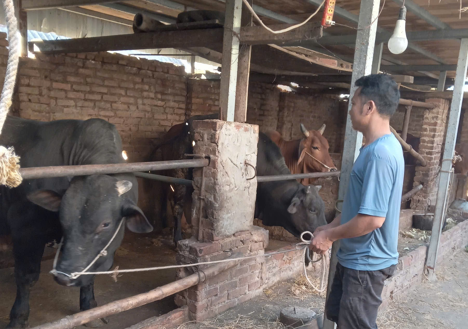 Từ nguồn vốn vay NHCSXH Sóc Sơn, anh Tạ Văn Minh, thôn Hiền Lương, xã Nội Bài đã đầu tư chăn nuôi bò, phát triển kinh tế gia đình.