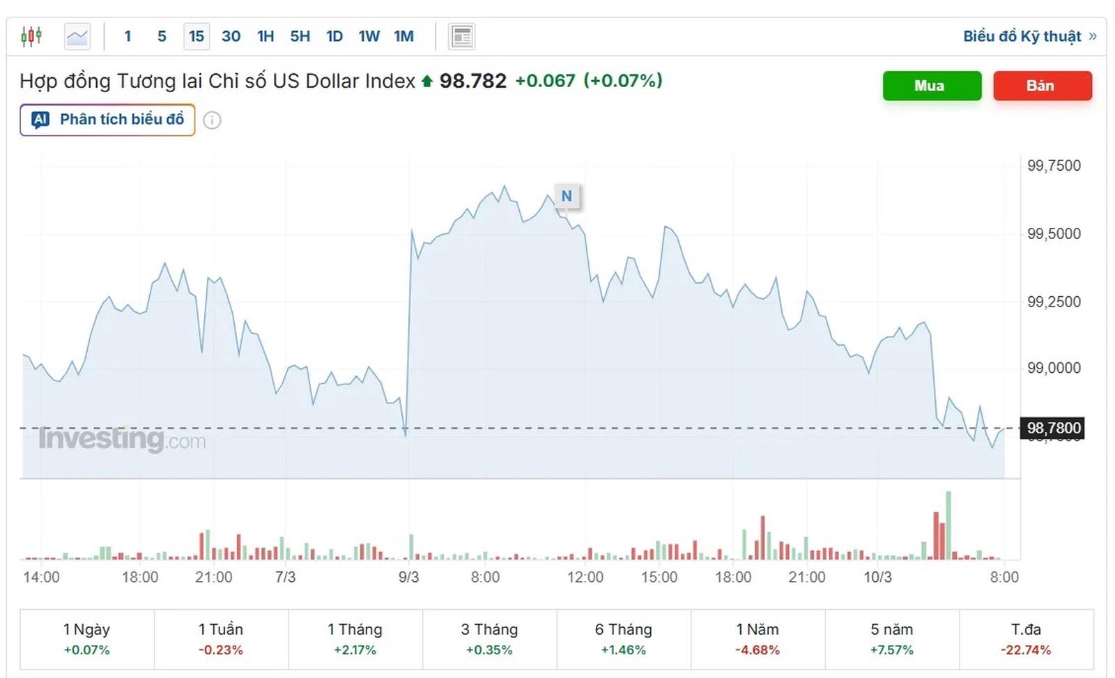 Diễn biến chỉ số DXY (Ảnh: investing.com).
