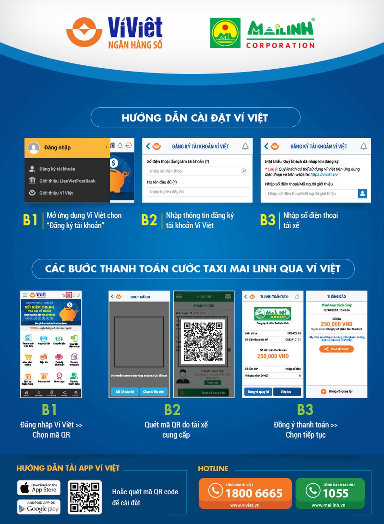 (Thanh tra)- Taxi Mai Linh, dịch vụ taxi hàng đầu Việt Nam đã chính thức thanh toán được bằng việc quét mã QR (QR Code) trên ứng dụng Ví Việt của LienVietPostBank trên toàn quốc. QR Code là công nghệ mới có tính bảo mật cao nhất hiện nay trong lĩnh vực thanh toán, tính năng đặc biệt này mang đến giải pháp công nghệ toàn diện phục vụ nhu cầu di chuyển và thanh toán nhanh của người dân trên toàn quốc.