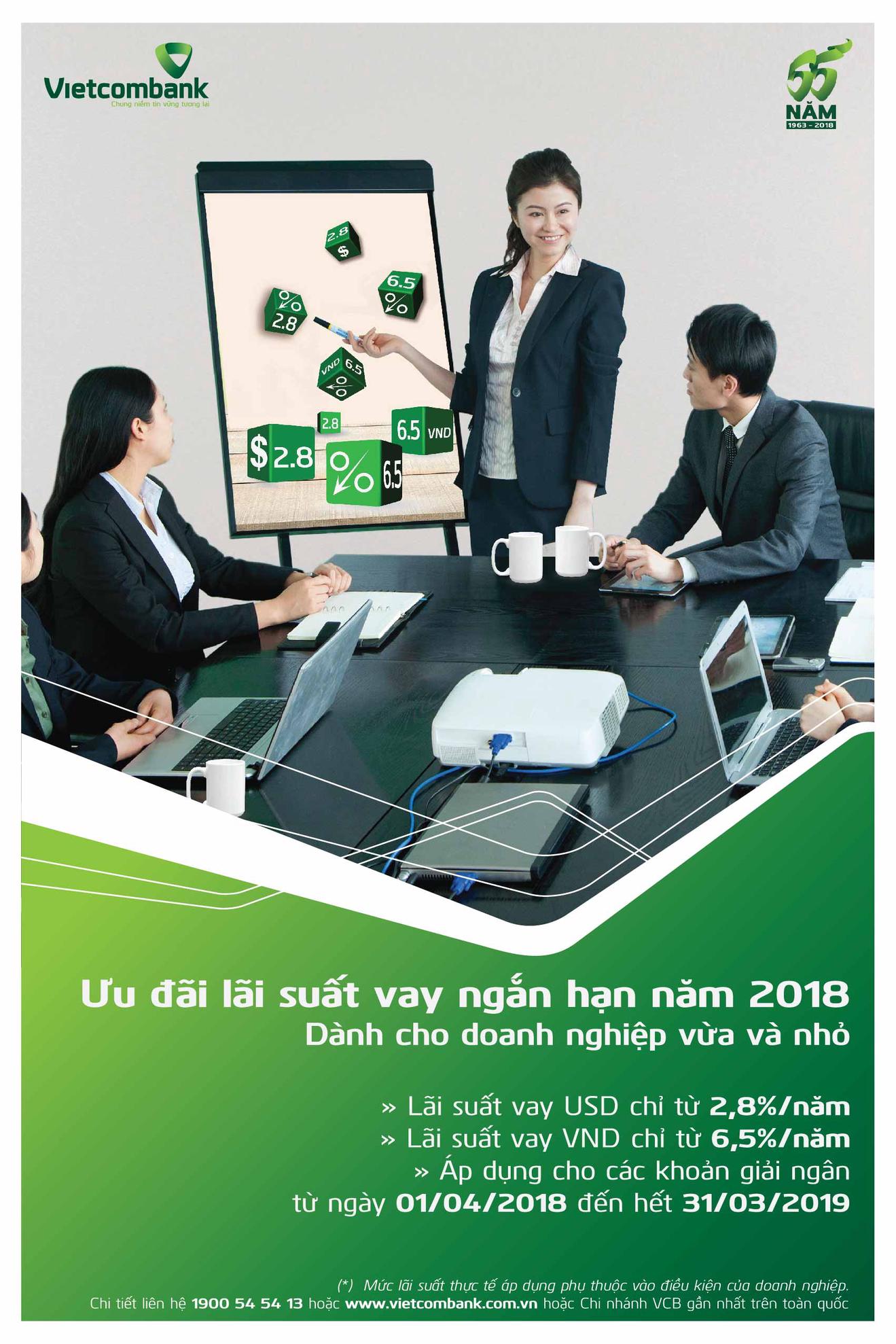Về lãi suất, Vietcombank liên tục và thường xuyên triển khai các chương trình ưu đãi hấp dẫn cho phân khúc DNN&V với lãi suất ngắn hạn từ 6,5%/năm (Các lĩnh vực ưu tiên và đối tượng ưu đãi, mức lãi suất tối thiểu từ 6%/năm). Với thế mạnh về nguồn ngoại tệ, Vietcombank áp dụng mức lãi suất cho vay USD từ 2,8%/năm. Ngoài ra, để hỗ trợ các dự án đầu tư và nhu cầu nguồn vốn trung dài hạn, Vietcombank triển khai chương trình ưu đãi và cam kết các mức lãi suất cố định 2 năm/3 năm/5 năm giúp DNN&V quản trị chi phí, an tâm sản xuất kinh doanh với mức lãi suất cạnh tranh trên thị trường.