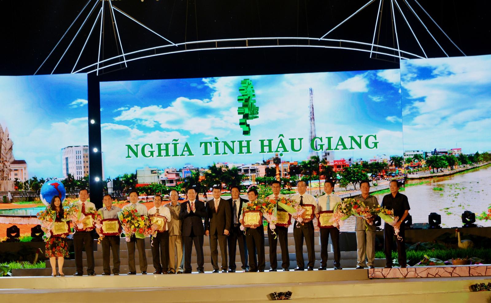 Ông Đào Hảo - Phó Tổng giám đốc Vietcombank (thứ 5 từ trái sang) vinh dự nhận Kỷ niệm chương của BTC MDEC - Hậu Giang 2016 vinh danh Vietcombank đối với những đóng góp cho hoạt động đầu tư, bảo trợ an sinh xã hội cho vùng Đồng bằng Sông Cửu Long