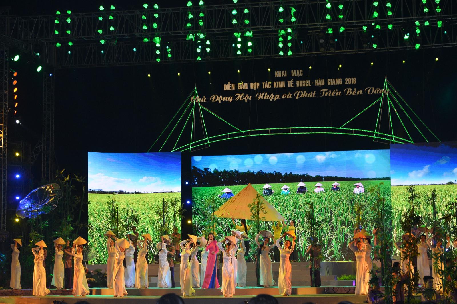 (Thanh tra)- Tối ngày 11/7, tại Quảng trường Hòa Bình, TP Vị Thanh, tỉnh Hậu Giang đã diễn ra Lễ khai mạc Diễn đàn hợp tác kinh tế Đồng bằng Sông Cửu Long (ĐBSCL) – Hậu Giang năm 2016 (MDEC – Hậu Giang 2016) với chủ đề: “ĐBSCL - Chủ động hội nhập và phát triển bền vững”.