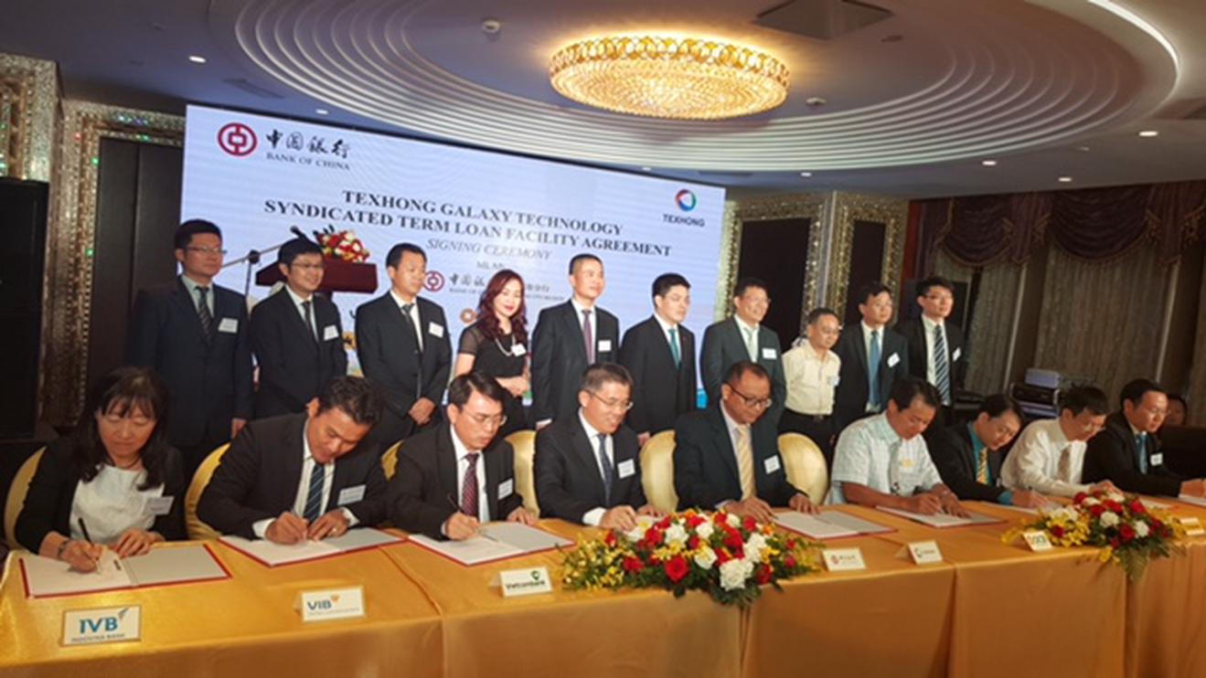 Phó Tổng giám đốc Vietcombank Nguyễn Thị Kim Oanh (hàng sau, thứ 4 từ trái sang) tham dự lễ ký kết hợp đồng tín dụng đồng tài trợ cho dự án của Tập đoàn Texhong