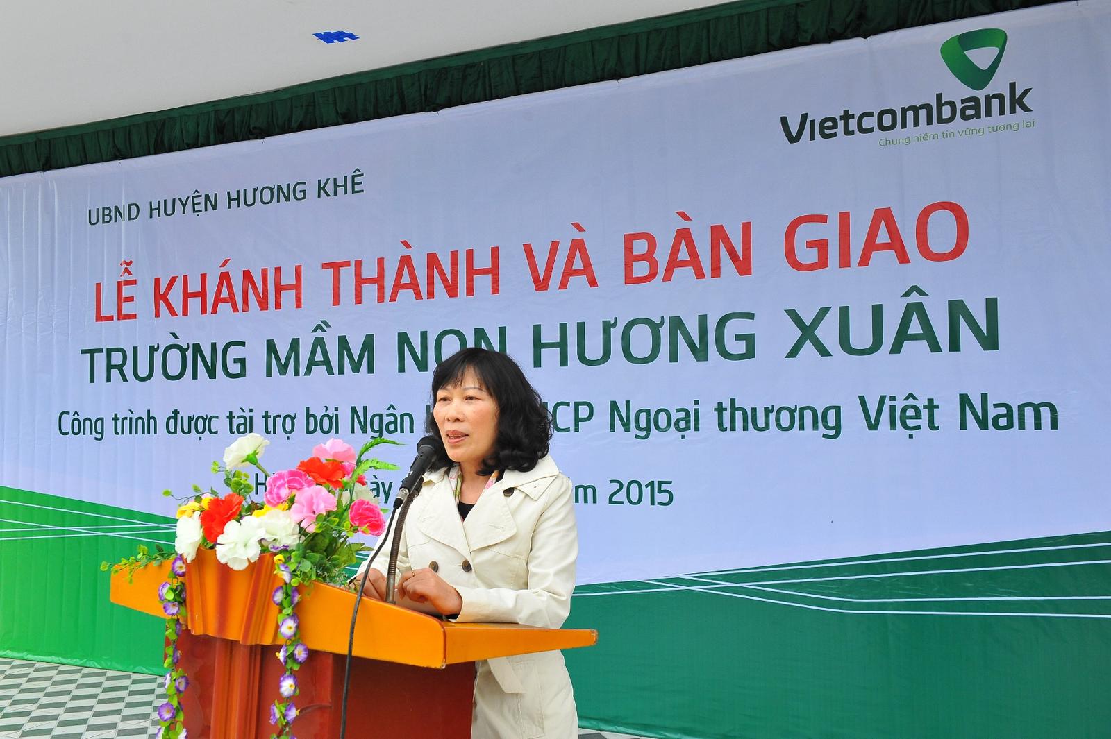 Thay mặt lãnh đạo và nhân dân địa phương, ông Hoàng Công Lý - Phó Chủ tịch UBND huyện Hương Khê đã gửi lời cảm ơn tới Ban lãnh đạo và tập thể người lao động Vietcombank nói chung và Vietcombank Hà Tĩnh nói riêng đã tạo điều kiện hỗ trợ cho địa phương số tiền để xây dựng một ngôi trường khang trang bởi Hương Xuân là một xã rất khó khăn. Lãnh đạo địa phương cam kết sẽ chỉ đạo việc gìn giữ, duy trì ngôi trường có được chất lượng tốt nhất, sạch đẹp để không phụ tấm lòng tốt đẹp của nhà tài trợ. Ông cũng gửi lời chúc Vietcombank sang năm mới 2016 sẽ ngày càng phát triển, gặt hái được nhiều thành công.