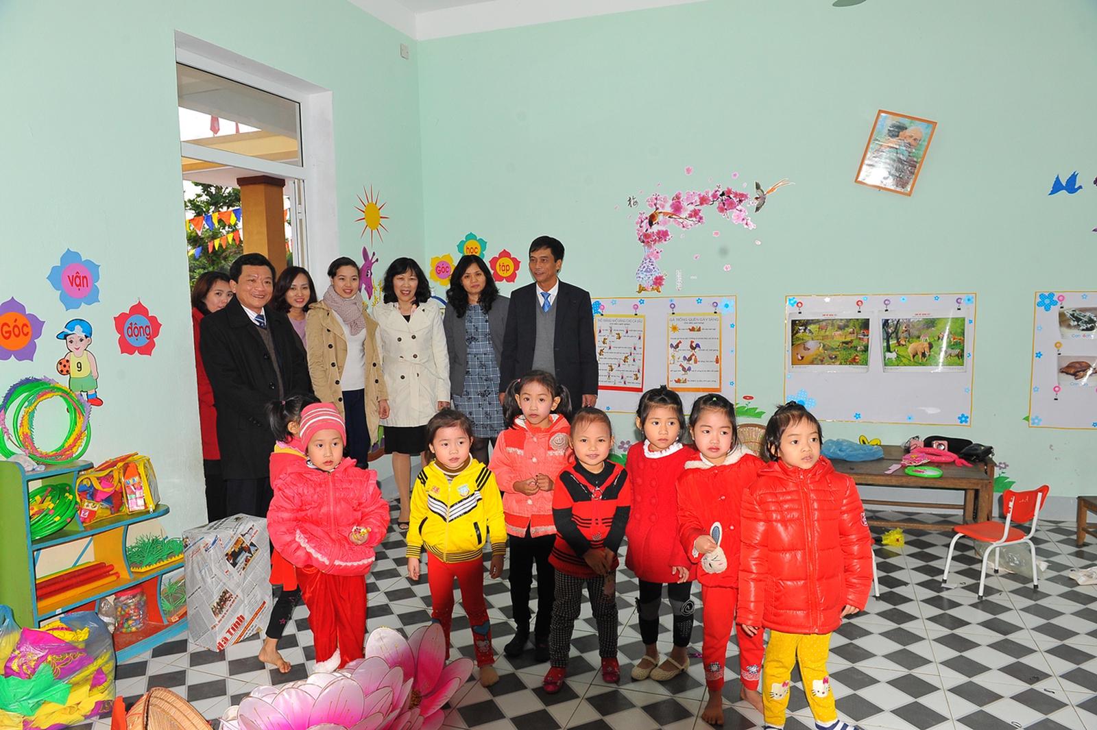 Lãnh đạo địa phương và Vietcombank thăm nơi ăn, ngủ và học tập của các cháu học sinh Trường mầm non Hương Xuân