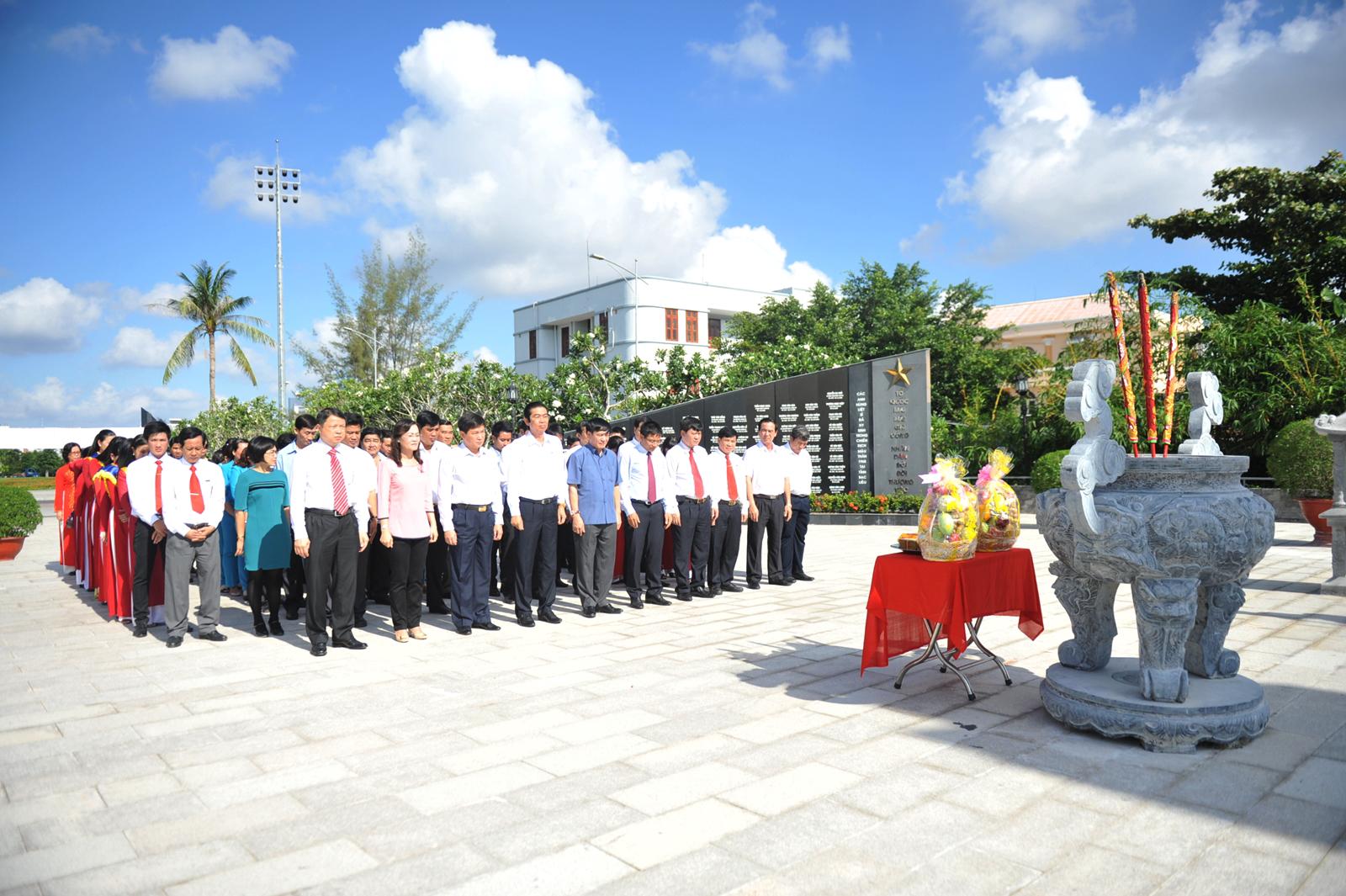 Đoàn đại biểu làm lễ tưởng niệm các AHLS tại Đài tưởng niệm Tết Mậu Thân 1968. Ảnh: MC