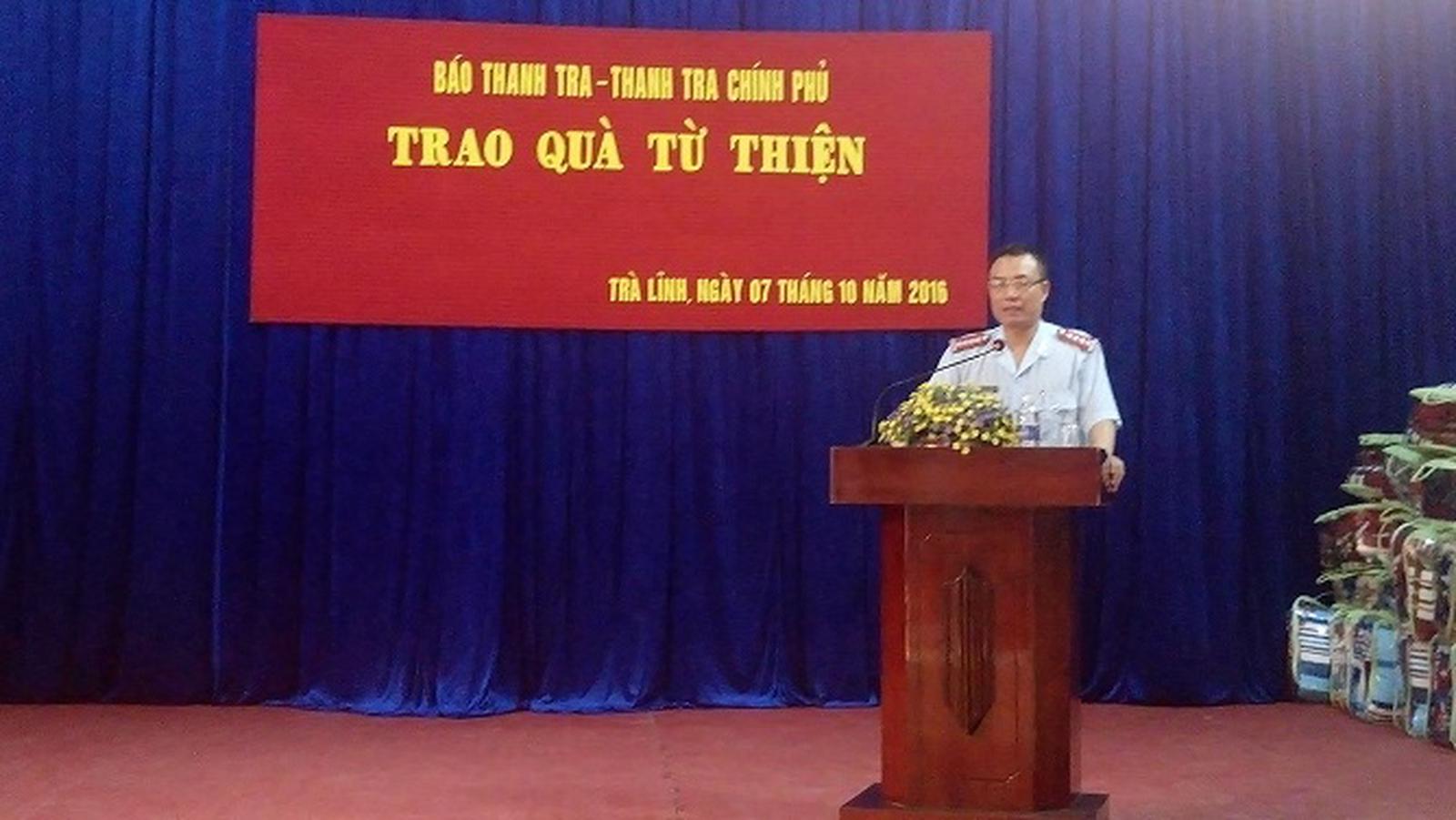 Ngày 07/10/2016, đoàn công tác tặng quà từ thiện của Báo Thanh tra do Đ/c Nguyễn Tuấn Anh – Phó Tổng biên tập Báo Thanh tra làm trưởng đoàn cùng các viên chức, người lao động của Báo đã có mặt tại huyện Trà Lĩnh, Cao Bằng.