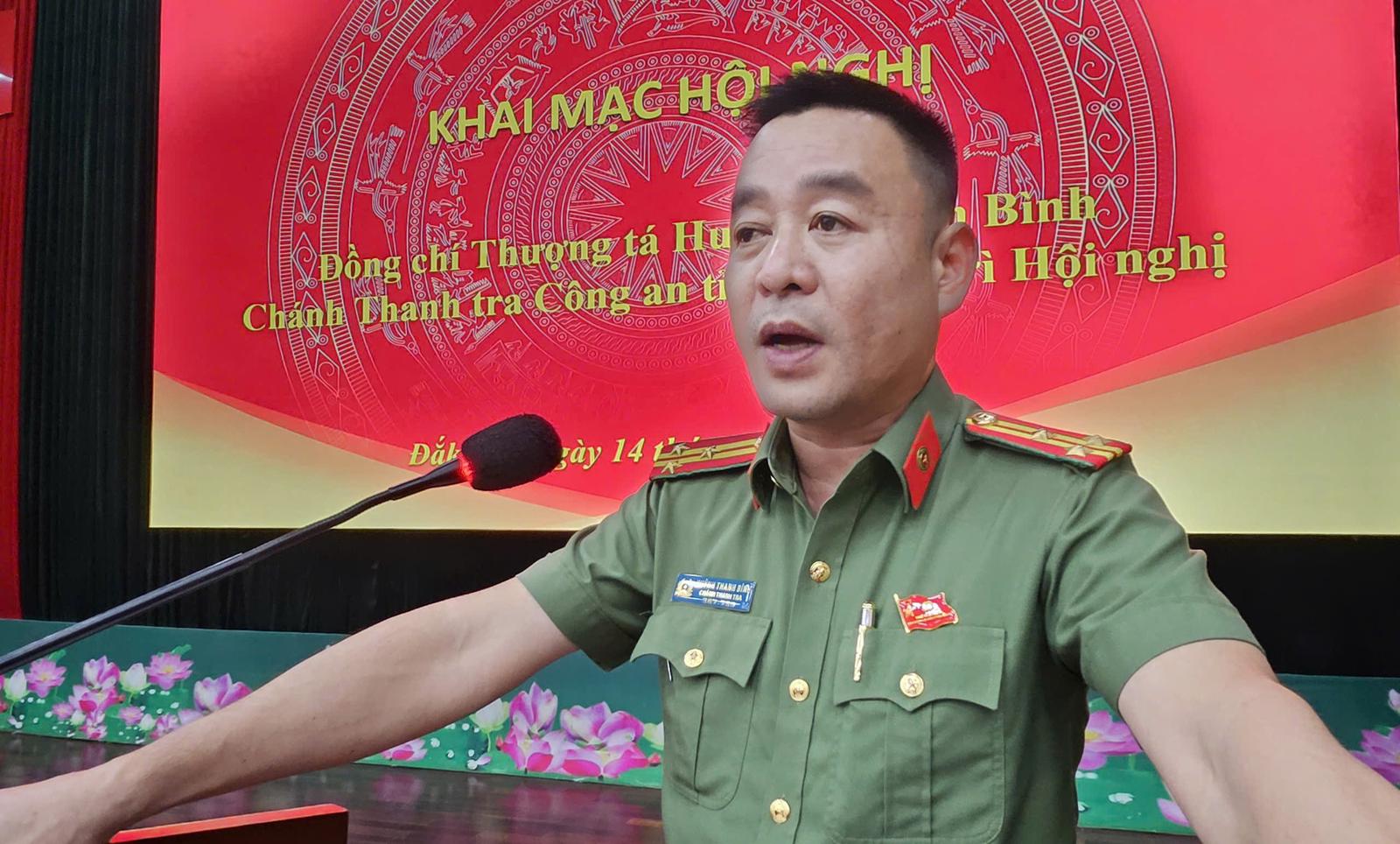 Thượng tá Huỳnh Thanh Bình – Chánh Thanh tra Công an tỉnh Đắk Lắk phát biểu tại hội nghị. Ảnh: CA