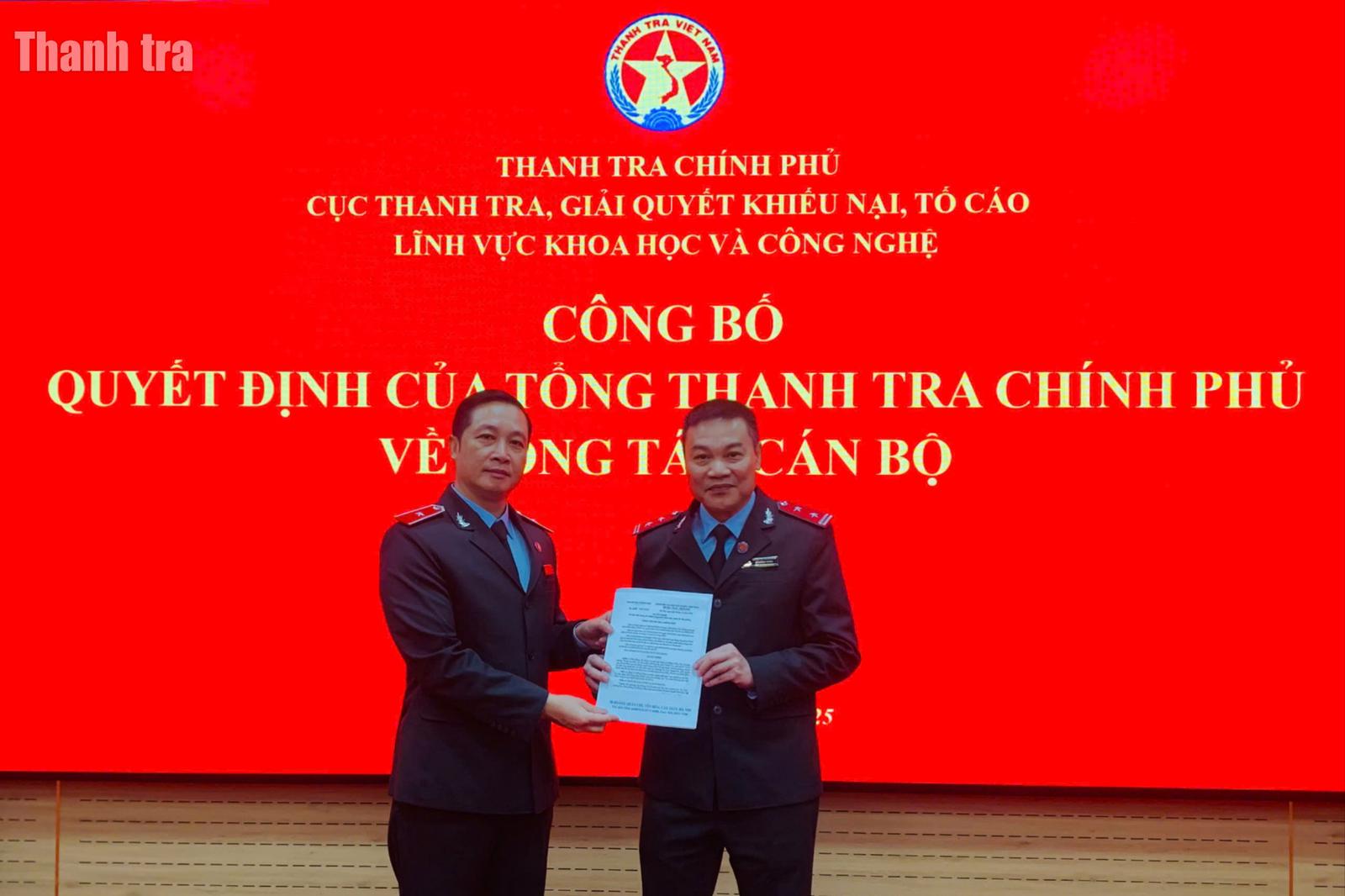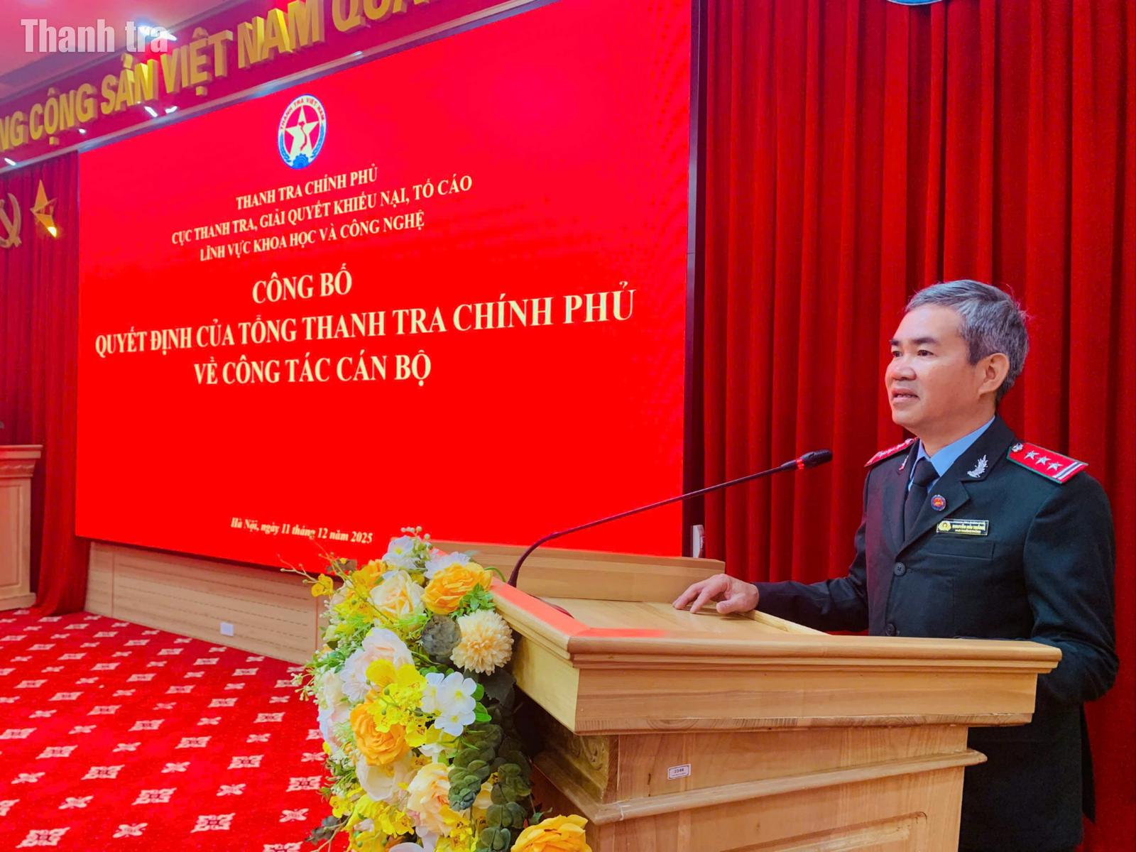 Thay mặt lãnh đạo Cục VII, ông Lê Xuân Hòa, Trưởng phòng Tổng hợp công bố toàn văn các Quyết định của điều động, bổ nhiệm công chức lãnh đạo, quản lý cấp phòng do Phó Tổng Thanh tra Dương Quốc Huy ký ban hành.