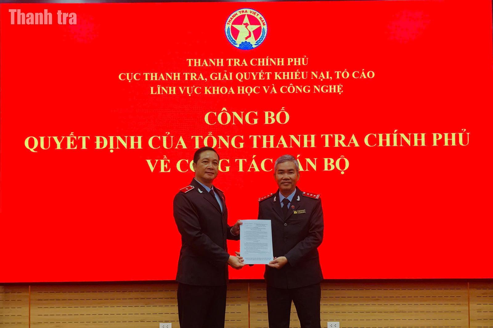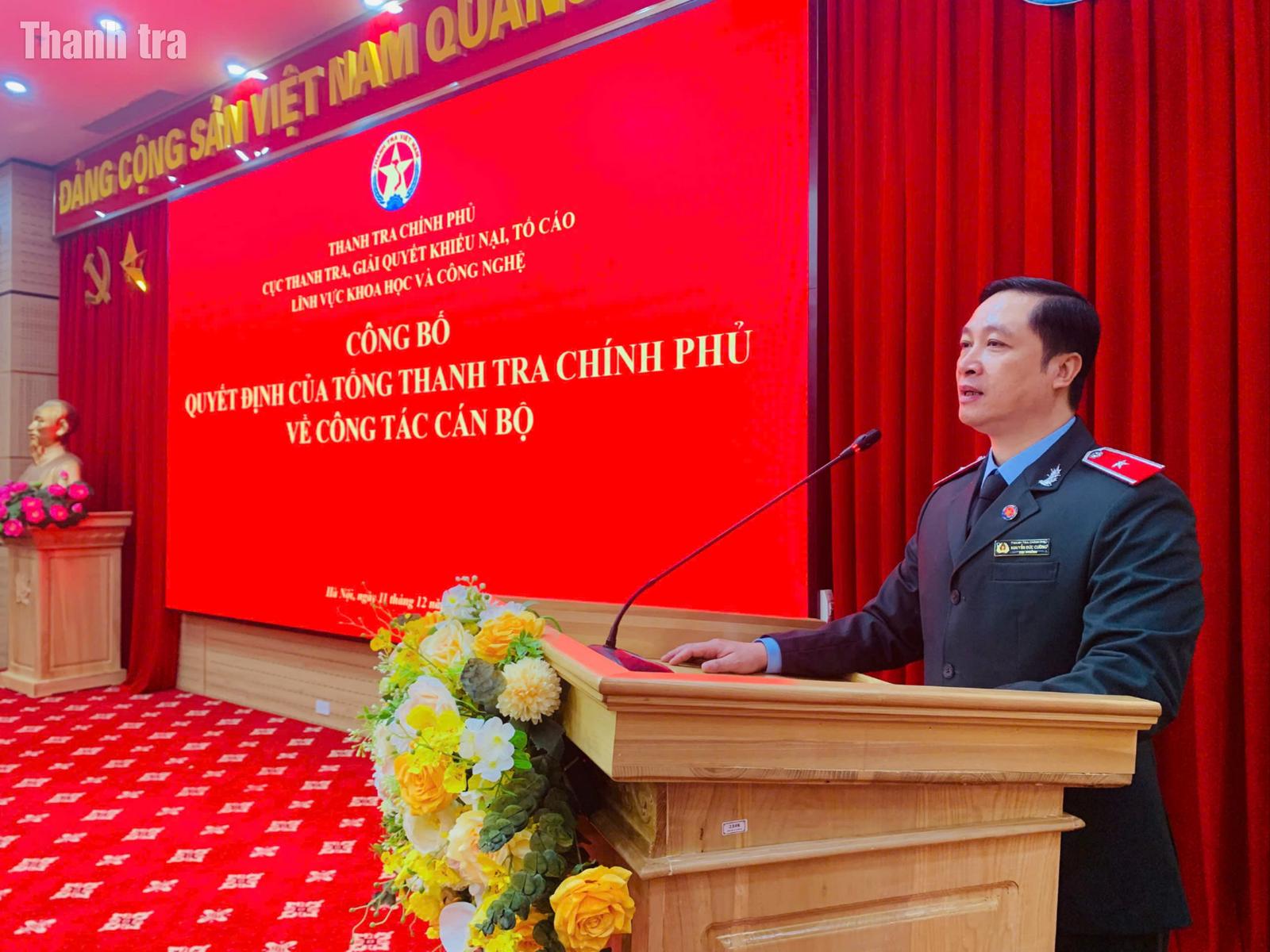 Phát biểu giao nhiệm vụ cho hai đồng chí được điều động, bổ nhiệm, ông Nguyễn Đức Cường, Cục trưởng Cục XII đánh giá cao những kết quả mà hai đồng chí đã đạt được trong thời gian qua và đã được Lãnh đạo Thanh tra Chính phủ ghi nhận, tin tưởng giao nhiệm vụ mới.