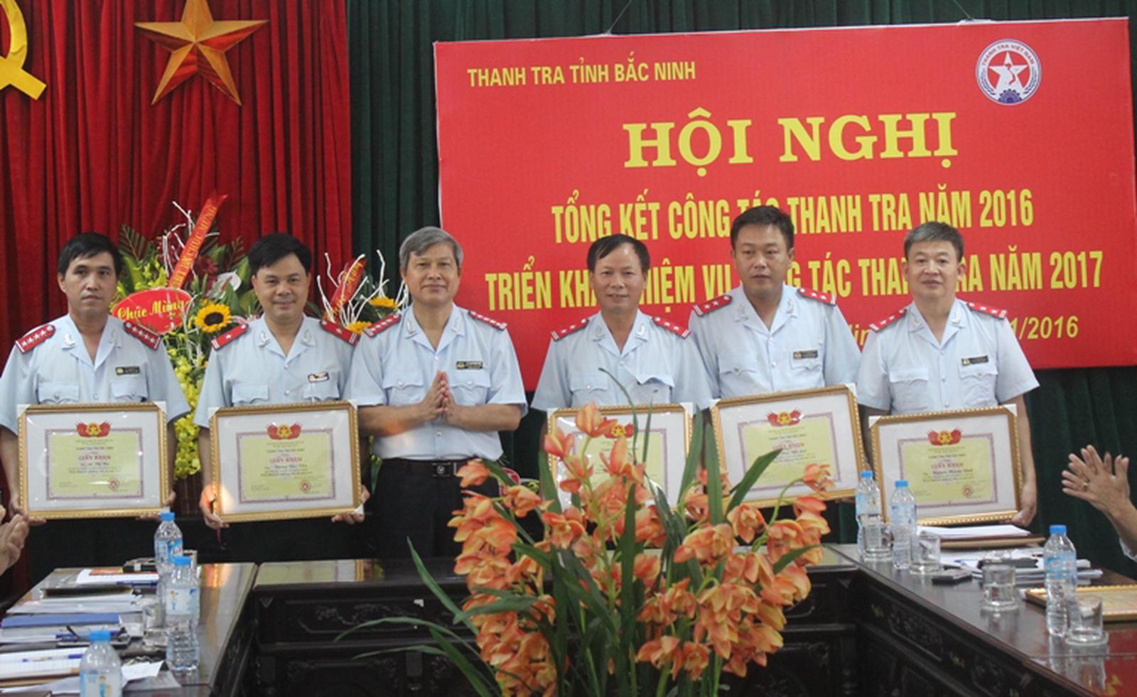 Tại hội nghị, Thanh tra tỉnh Bắc Ninh cũng đã trao danh hiệu khen thưởng cho các tập thể và cá nhân có thành tích hoàn thành tốt nhiệm vụ công tác năm 2016, đồng thời trao Kỷ niệm chương cho 3 đồng chí có nhiều đóng góp tích cực cho sự nghiệp thanh tra.